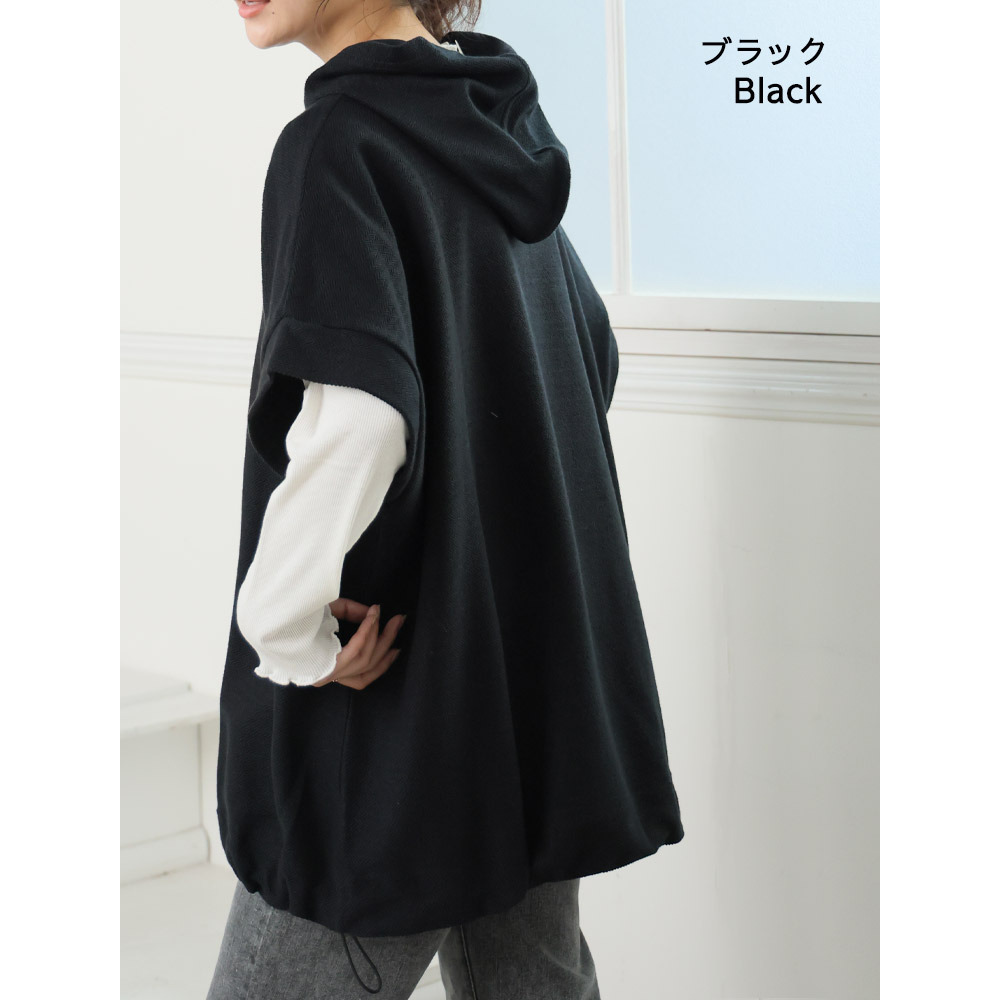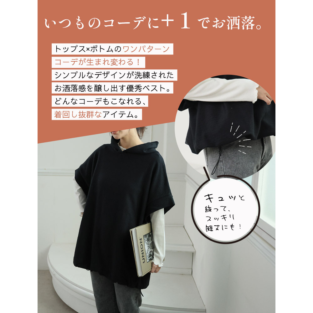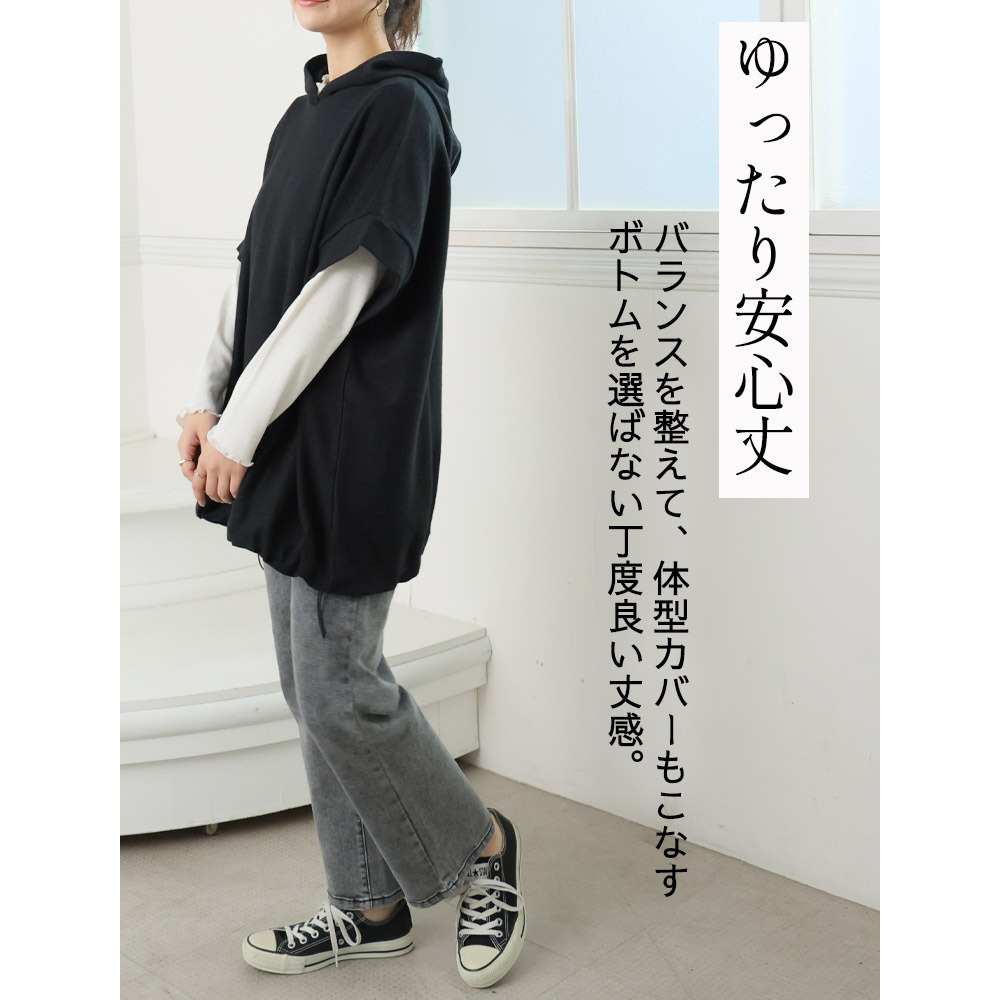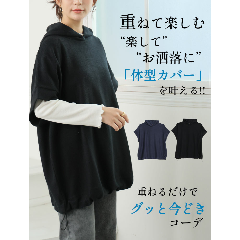 重ねて楽する ストレッチ ゆったり フードベスト パーカー スウェット