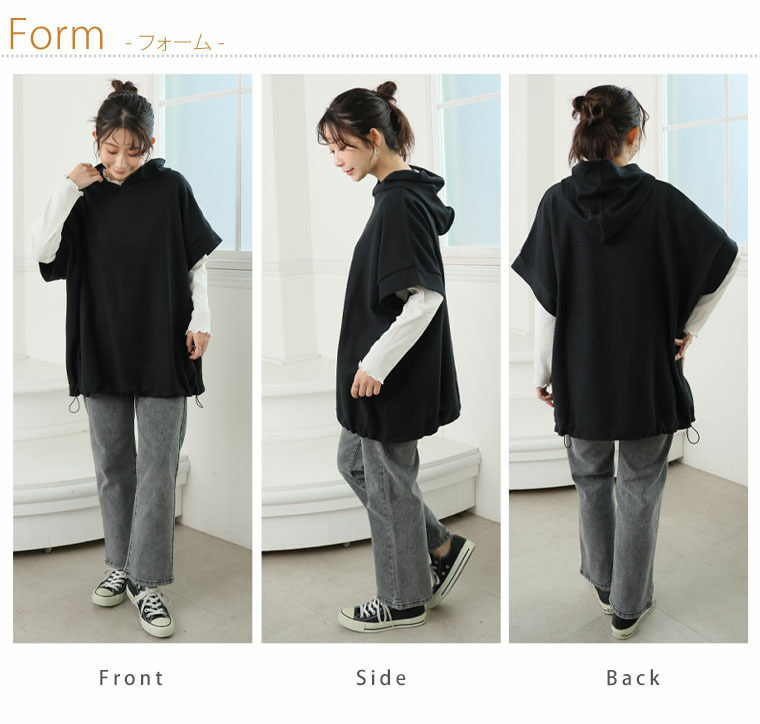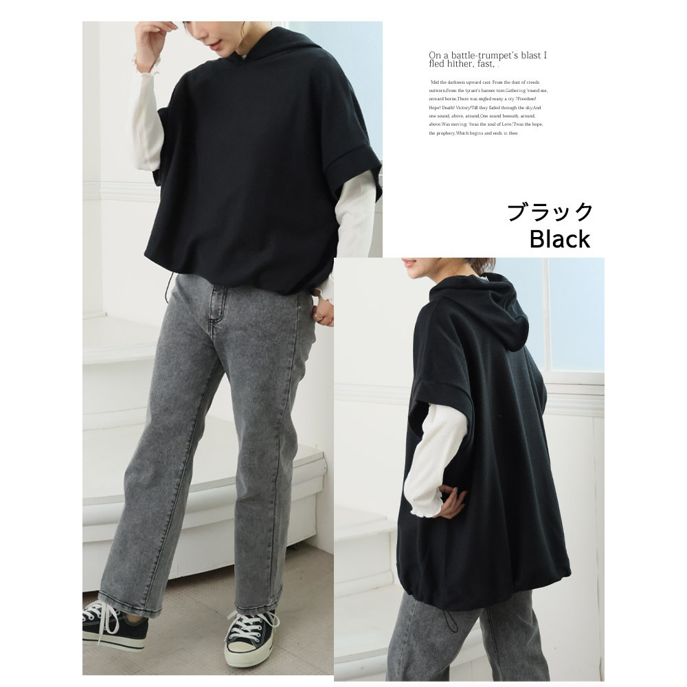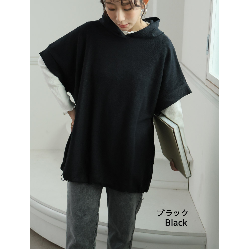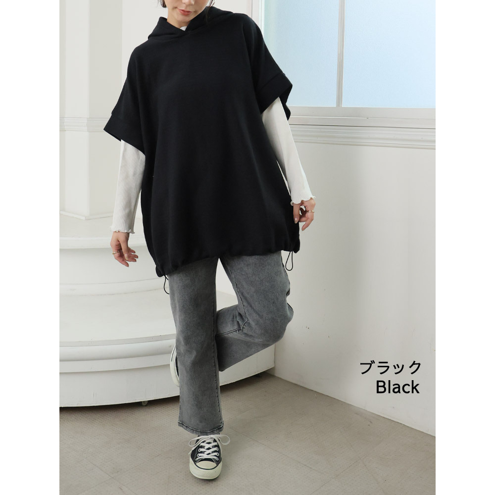 重ねて楽する ストレッチ ゆったり フードベスト パーカー スウェット
