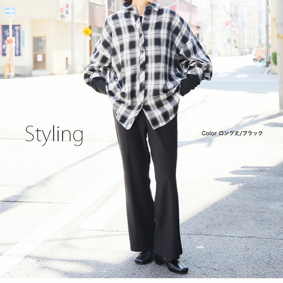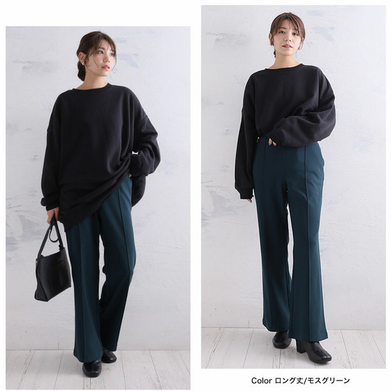 タイツいらずで下半身ぽかぽか! 2丈から選べる 美脚 セミフレアパンツ