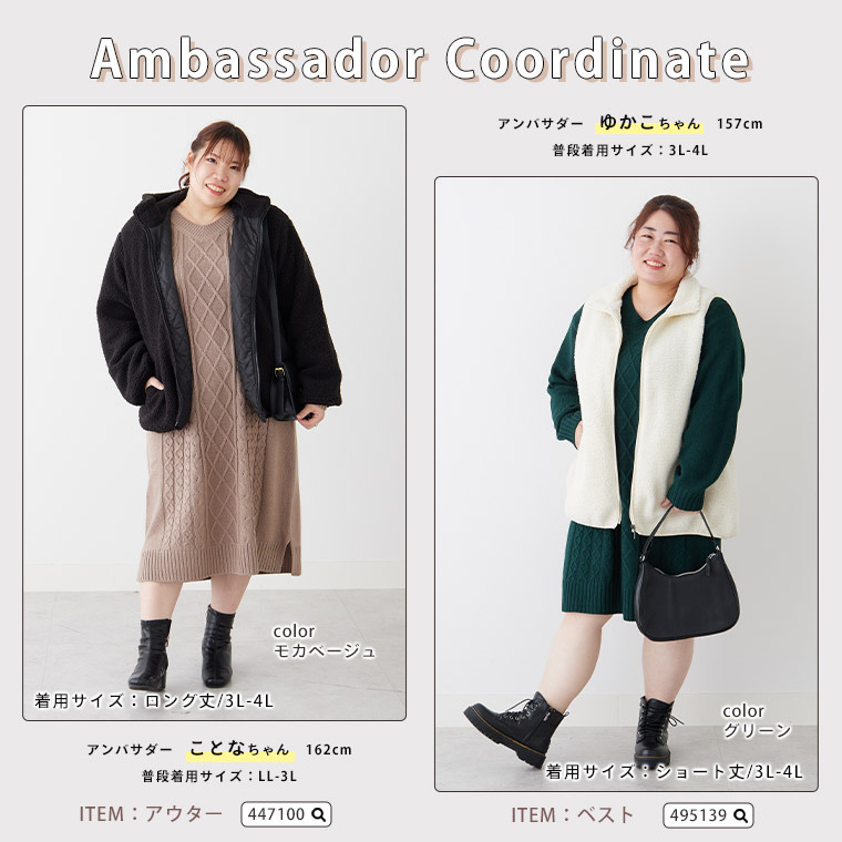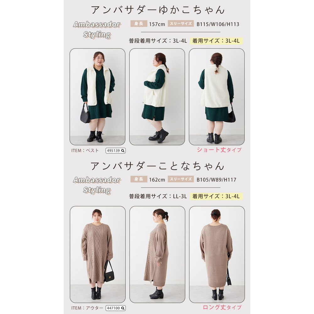 Iライン でスッキリ着痩せ 丈が選べる ケーブル編み ニットワンピ