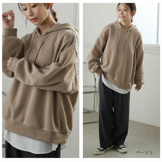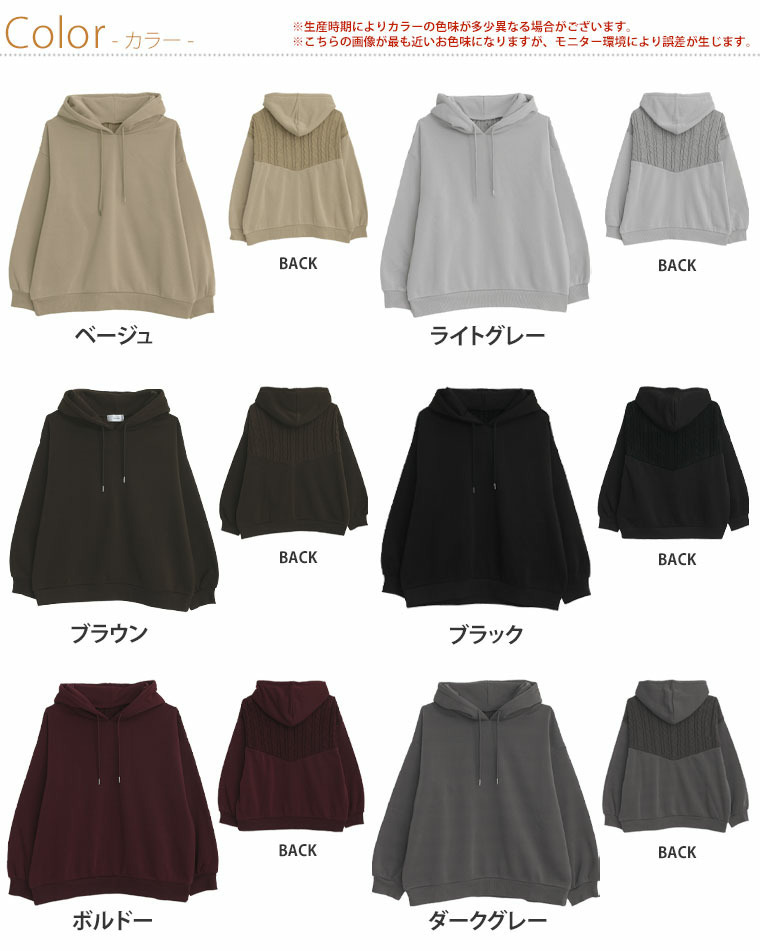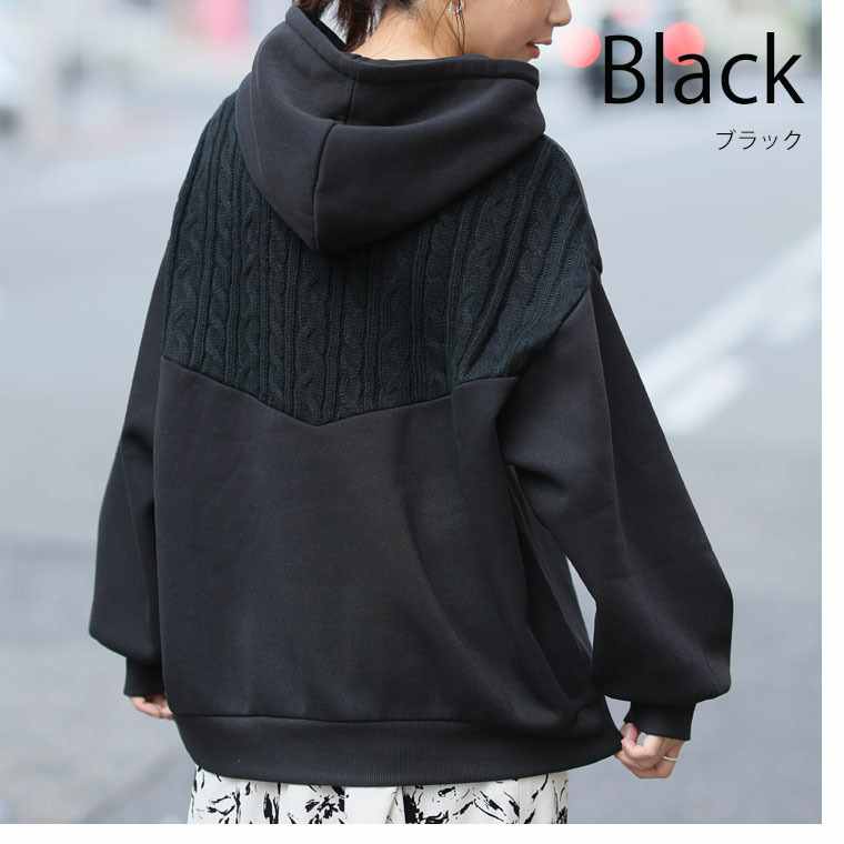 • ニット ドッキング 裏起毛 パーカー あったか19