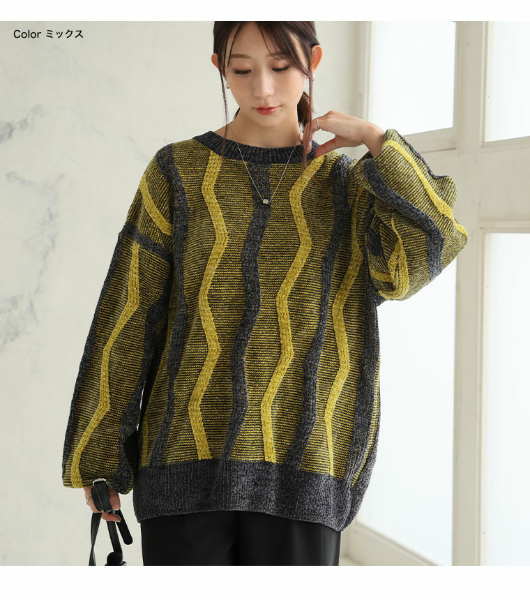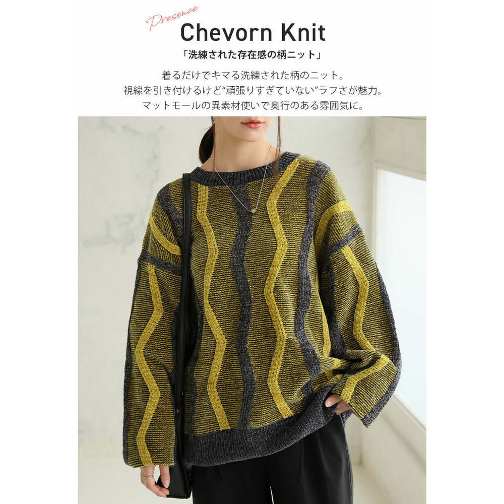 • センスが光る!! シェブロン柄 マットモール ニット1