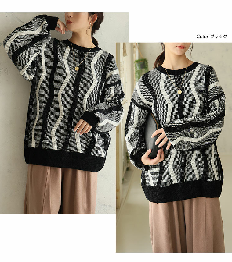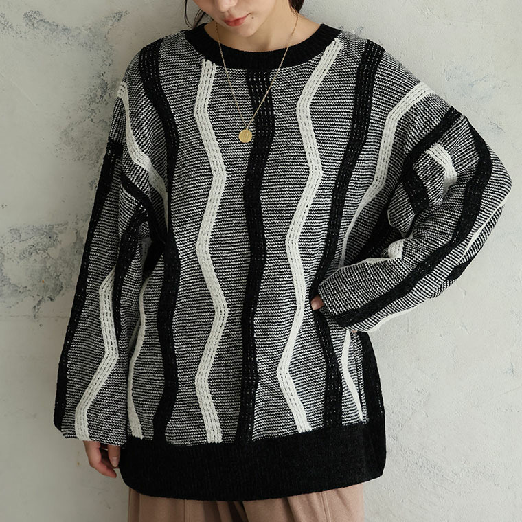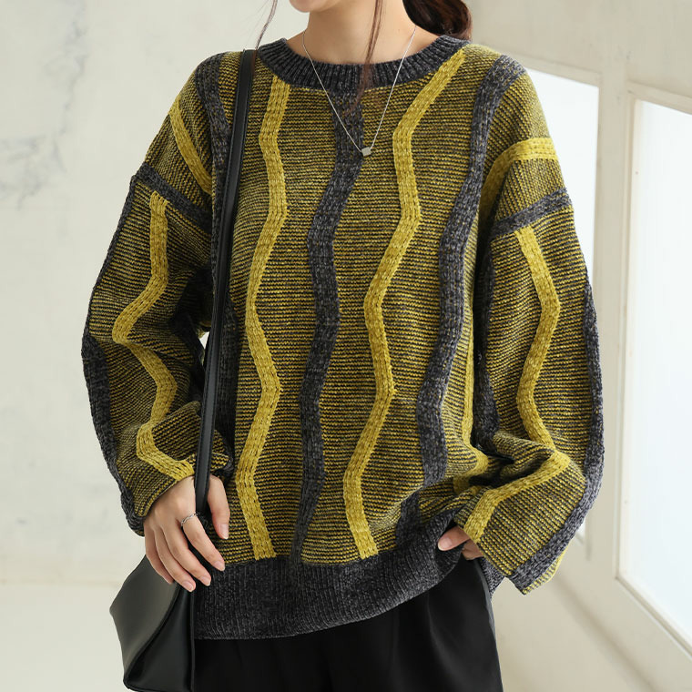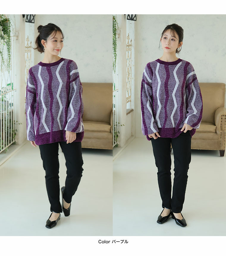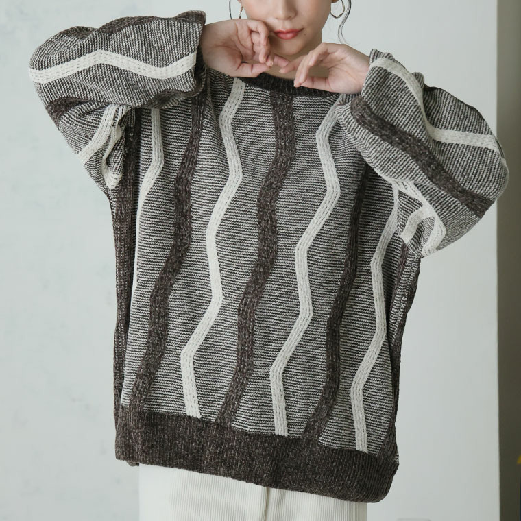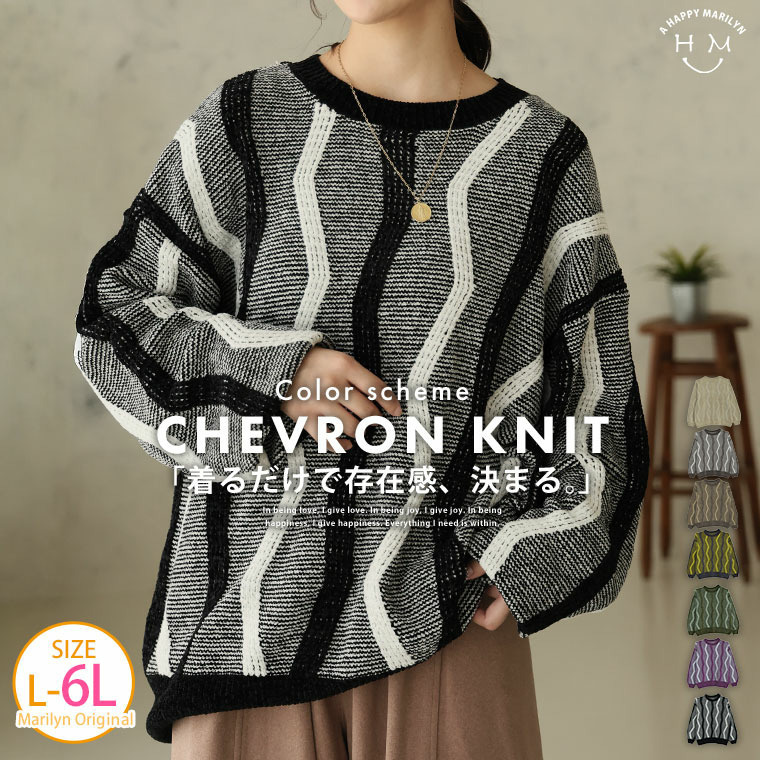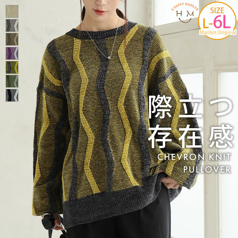 • センスが光る!! シェブロン柄 マットモール ニット24
