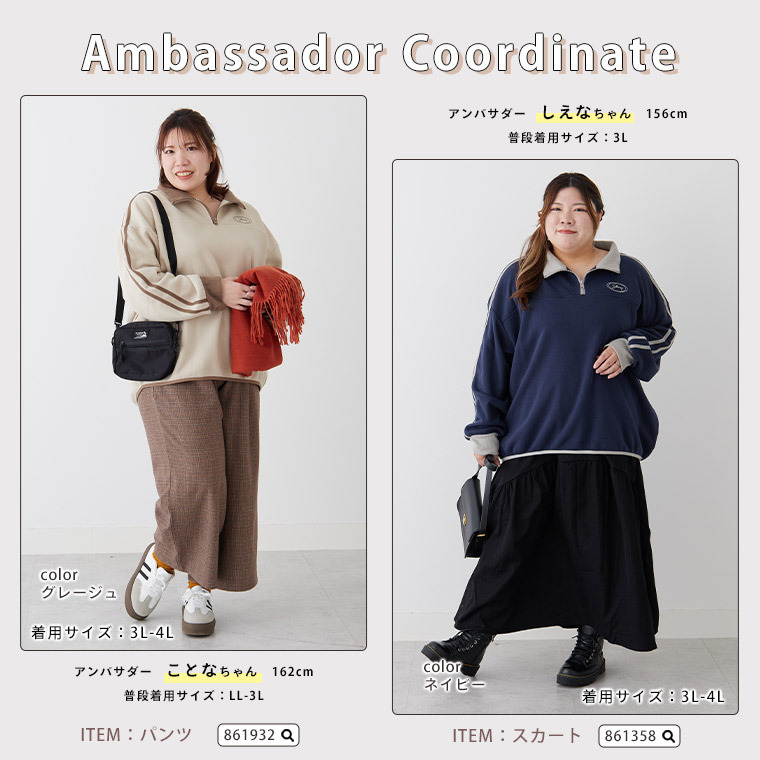 ハピぽか 裏起毛 ライン使い ハーフZIPスウェット・毛玉になりにくい