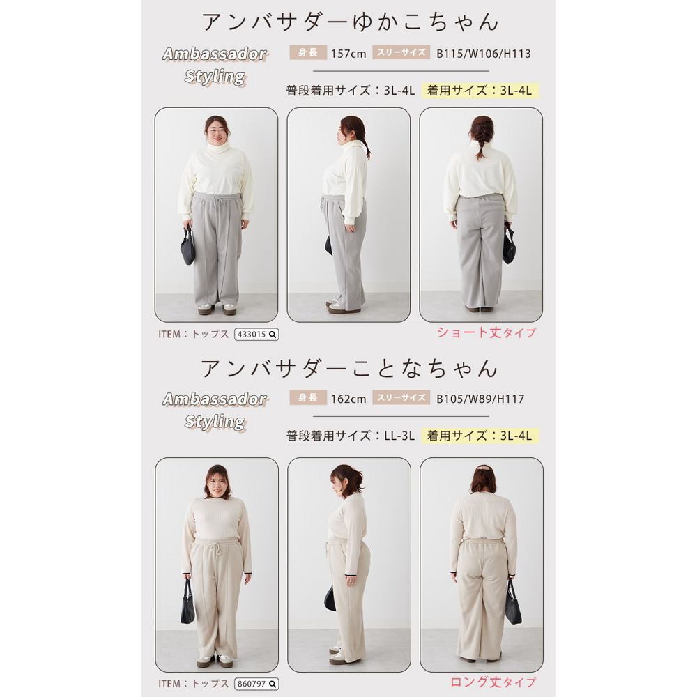 〇ロング丈 ■L-LL(タグ1)■ 総丈100cm ウエスト74-94cm ヒップ110cm 前股上34cm 後股上45cm 太腿周り73cm 股下68cm 裾周り62cm ■3L-4L(タグ2)■ 総丈102cm ウエスト84-104cm ヒップ120cm 前股上36cm 後股上47cm 太腿周り77cm 股下68cm 裾周り64cm ■5L-6L(タグ3)■ 総丈104cm ウエスト94-114cm ヒップ130cm 前股上38cm 後股上49cm 太腿周り81cm 股下68cm 裾周り66cm ■7L-8L(タグ5)■ 総丈106cm ウエスト104-124cm ヒップ140cm 前股上40cm 後股上51cm 太腿周り85cm 股下68cm 裾周り68cm 〇ショート丈 ■L-LL(タグ1)■ 総丈95cm ウエスト74-94cm ヒップ110cm 前股上34cm 後股上45cm 太腿周り73cm 股下63cm 裾周り62cm ■3L-4L(タグ2)■ 総丈97cm ウエスト84-104cm ヒップ120cm 前股上36cm 後股上47cm 太腿周り77cm 股下63cm 裾周り64cm ■5L-6L(タグ3)■ 総丈99cm ウエスト94-114cm ヒップ130cm 前股上38cm 後股上49cm 太腿周り81cm 股下63cm 裾周り66cm ■7L-8L(タグ5)■ 総丈101cm ウエスト104-124cm ヒップ140cm 前股上40cm 後股上51cm 太腿周り85cm 股下63cm 裾周り68cm