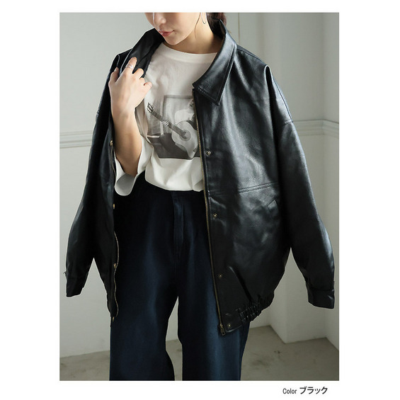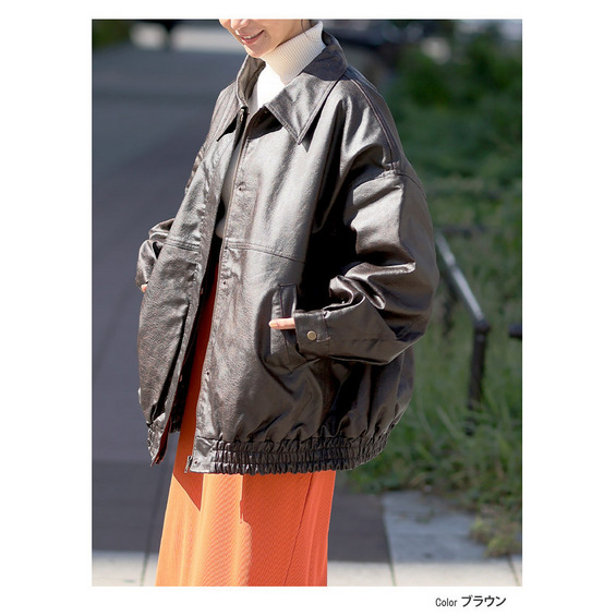 ゆるサイズで着る 合皮 中綿入り レザーライク ブルゾン