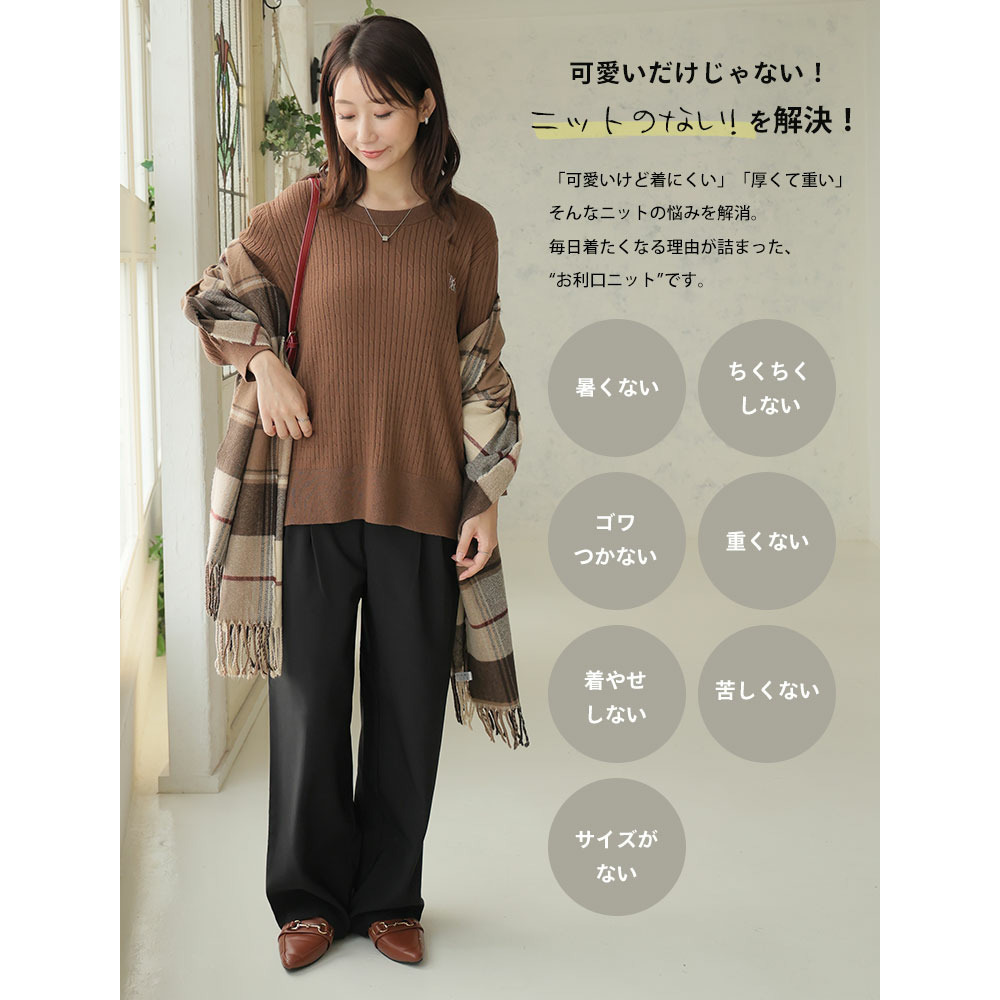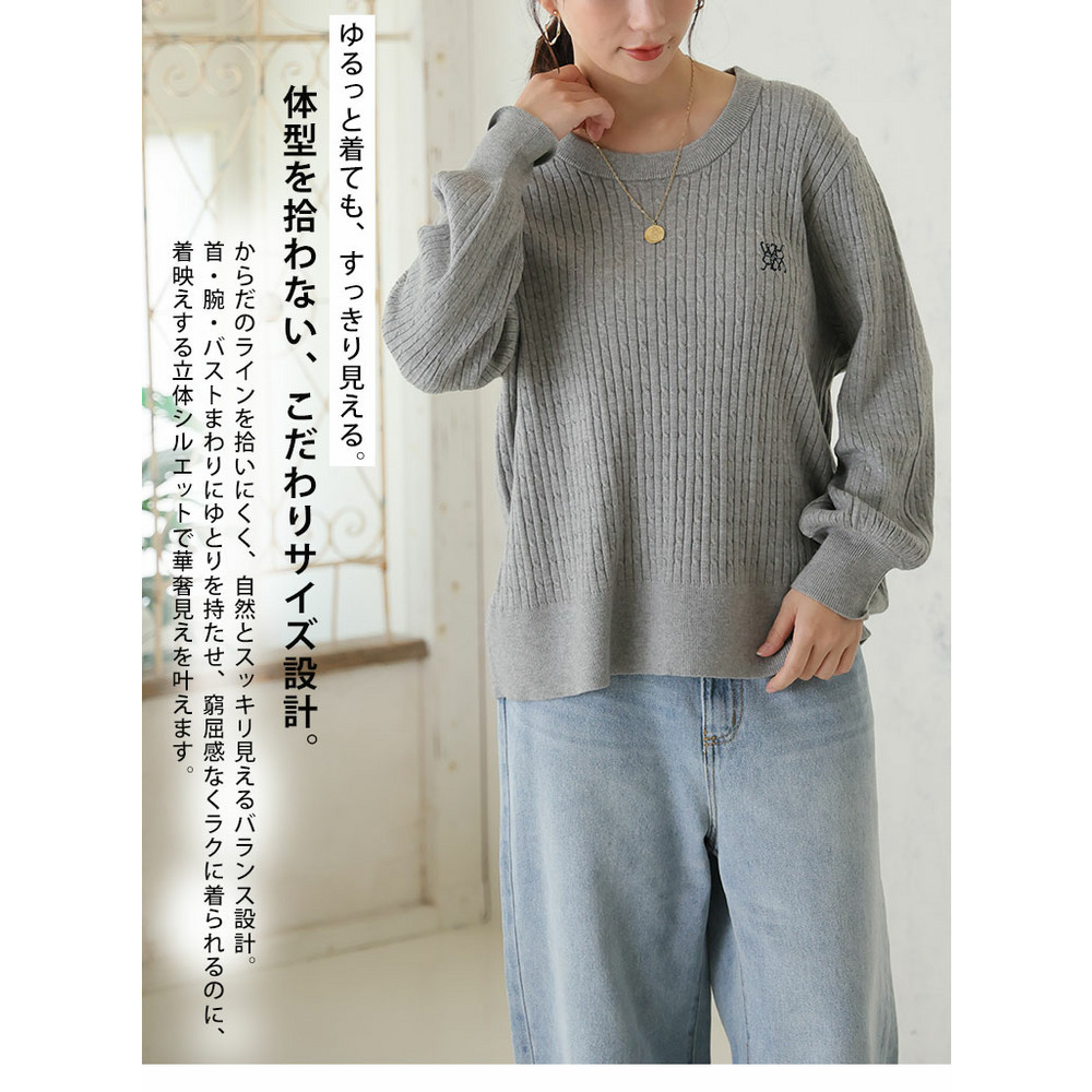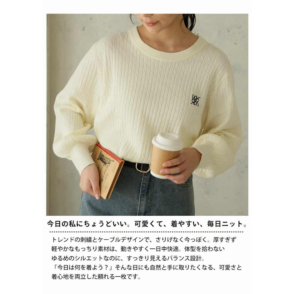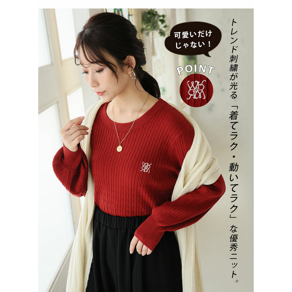 ない! を解決! 刺繍入り 細魅せ ケーブル もっちり ニット