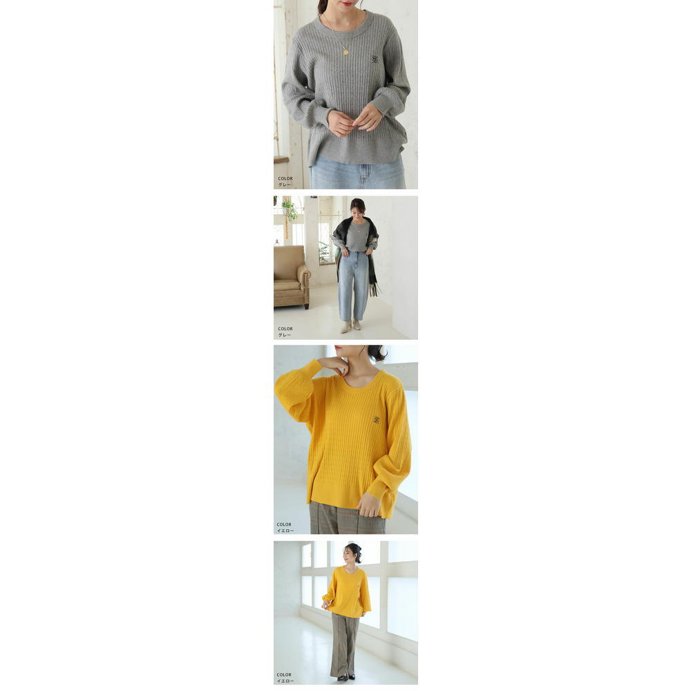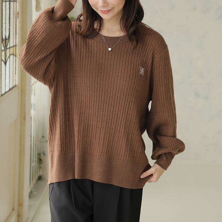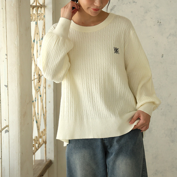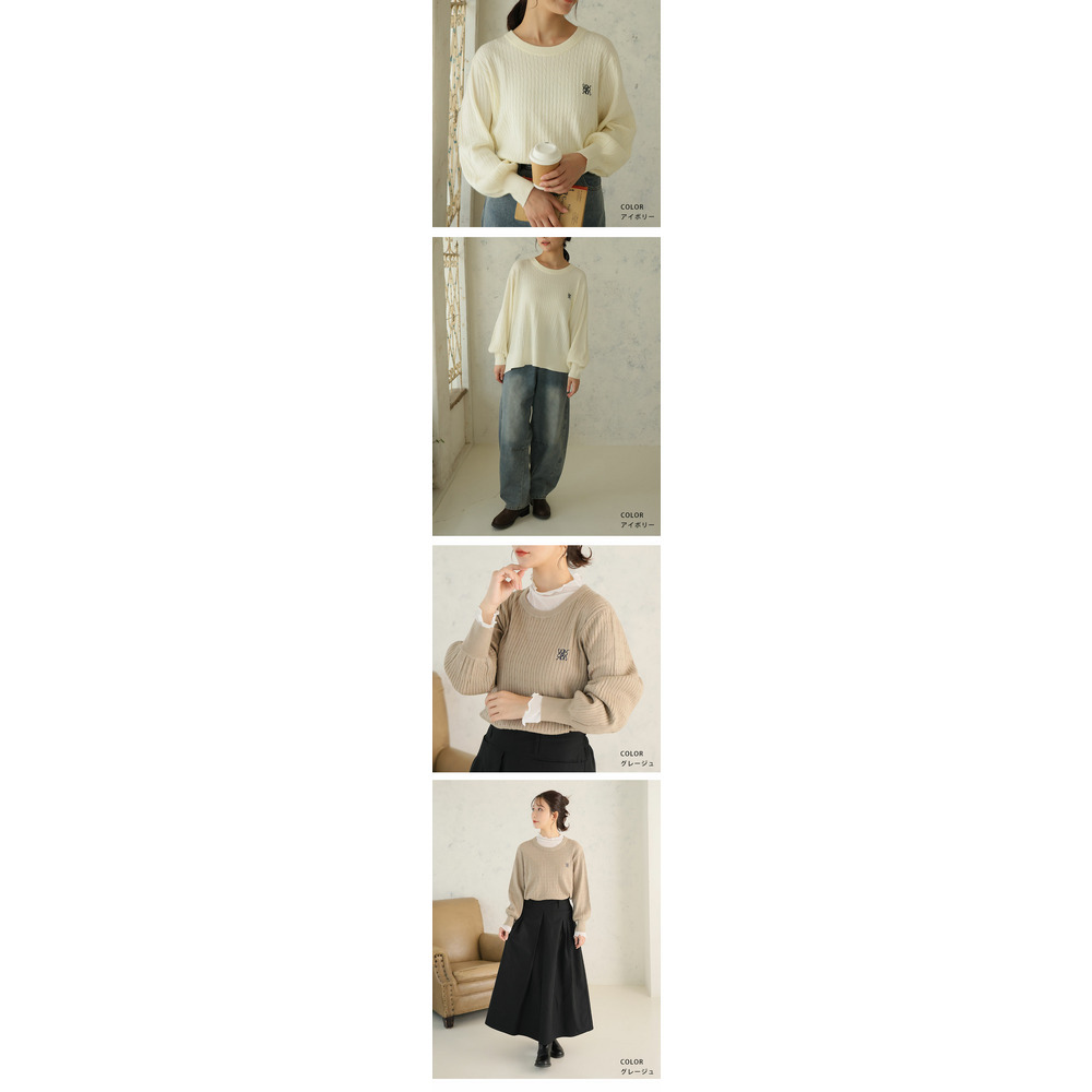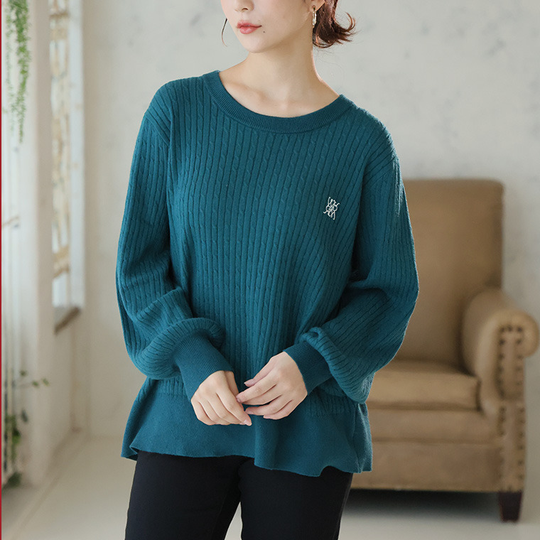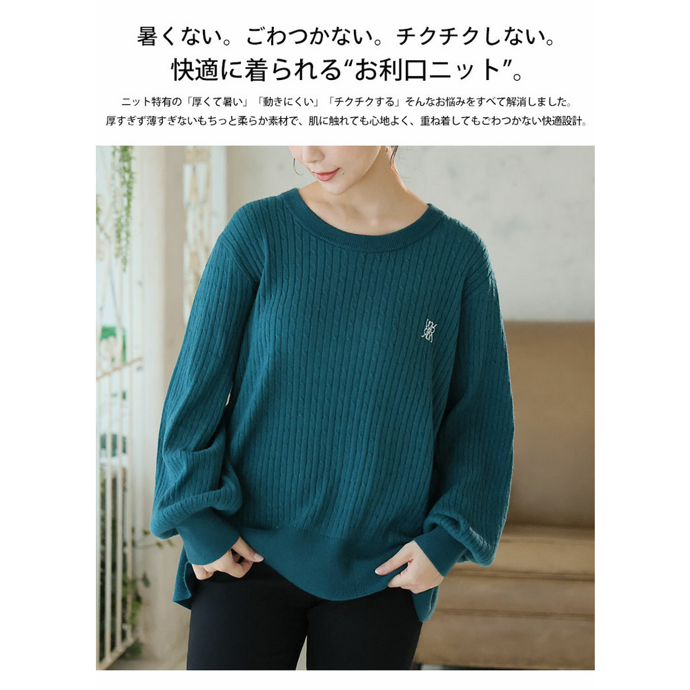 ない! を解決! 刺繍入り 細魅せ ケーブル もっちり ニット