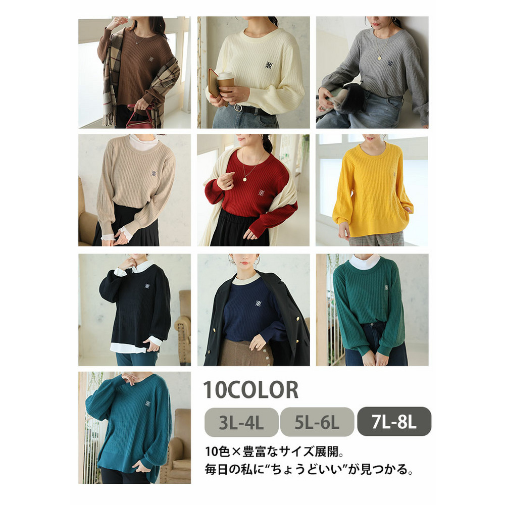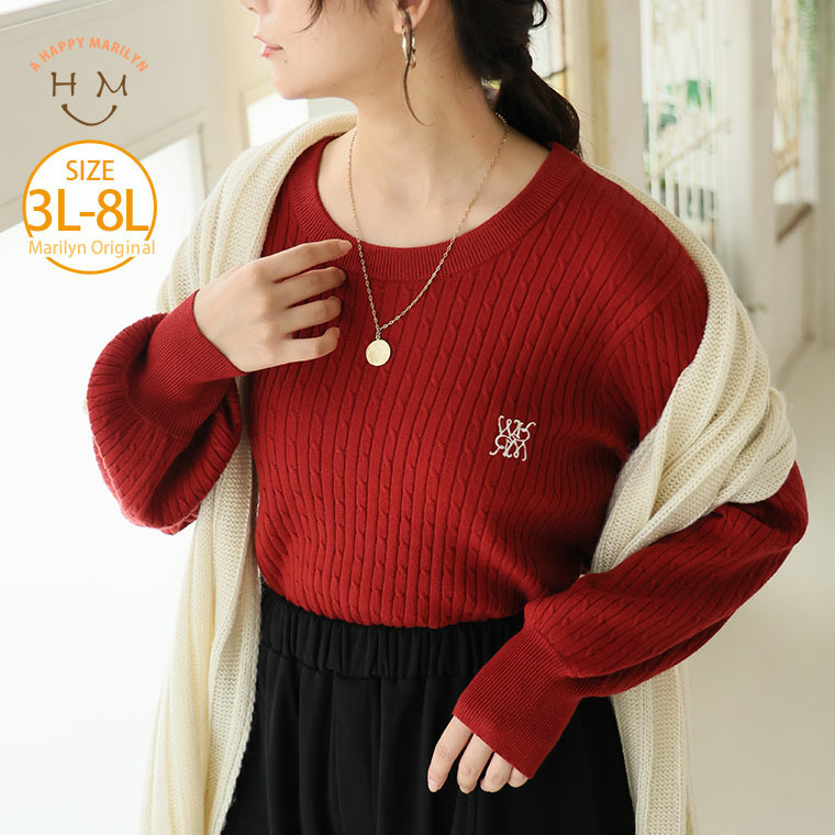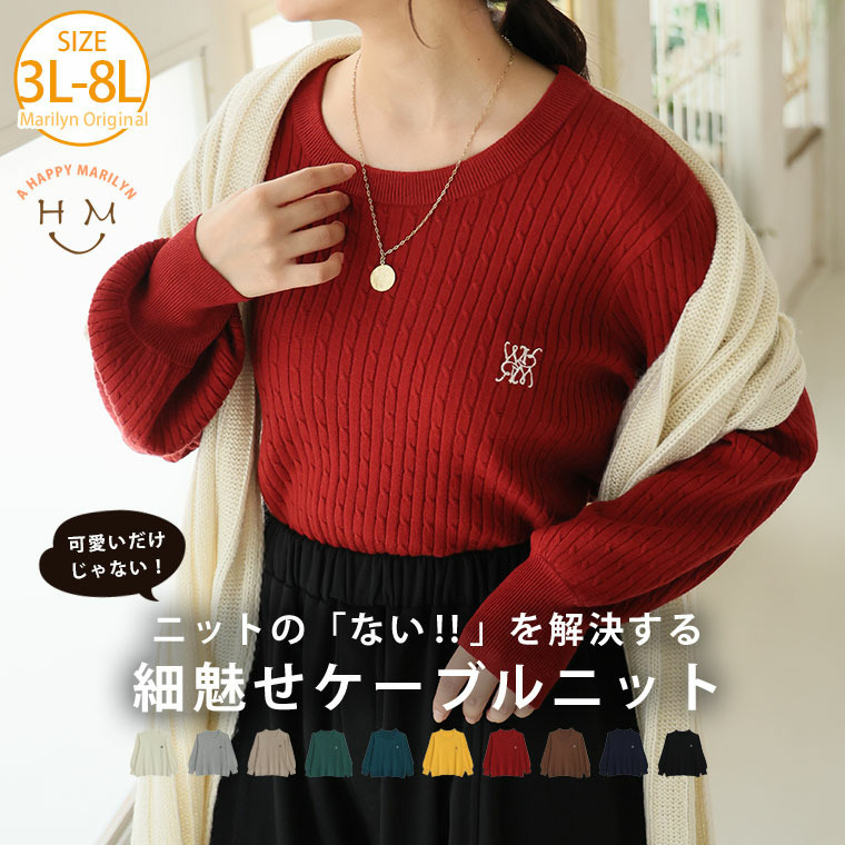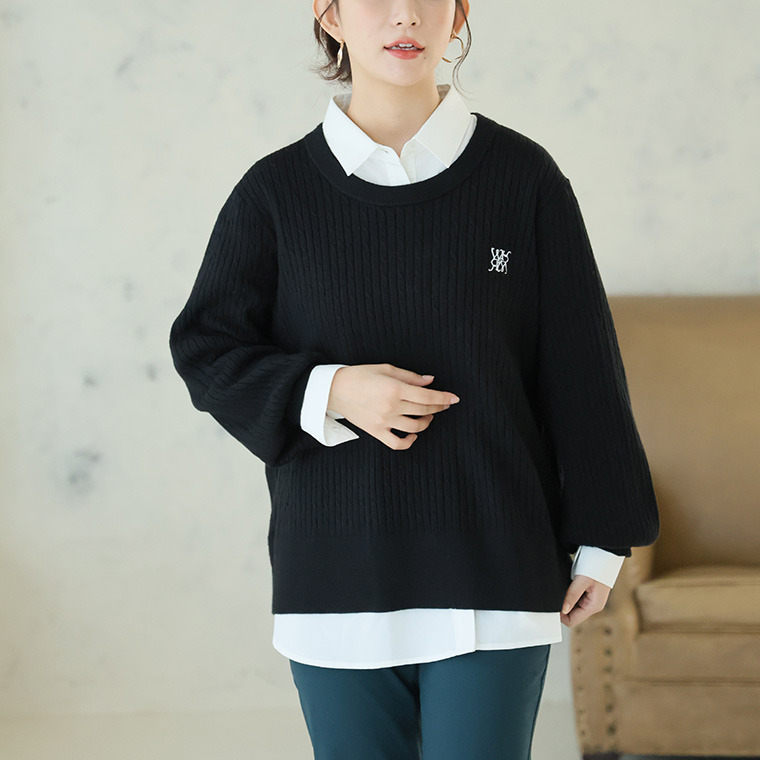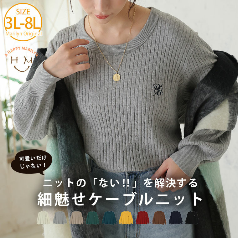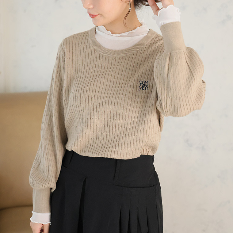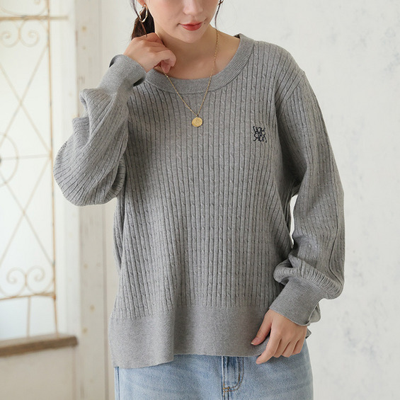ない! を解決! 刺繍入り 細魅せ ケーブル もっちり ニット