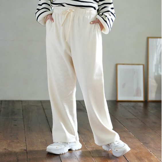 • 裏フリースで家でも外でもあったか ふっくら コーデュロイ イージー ワイドパンツ18