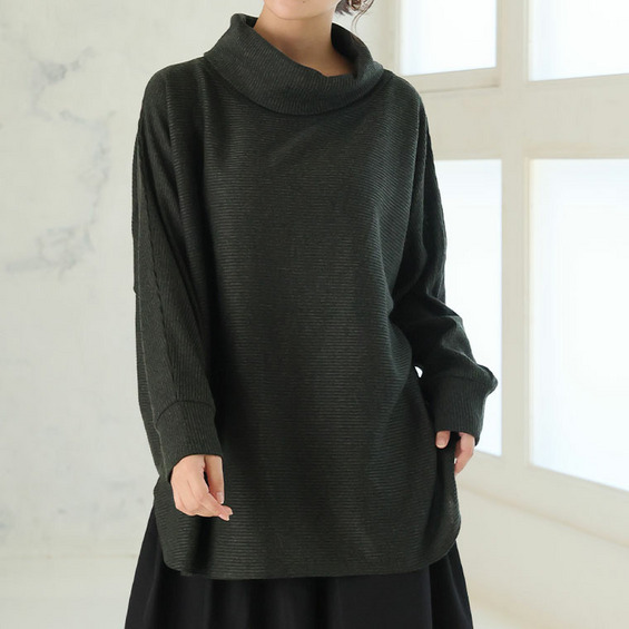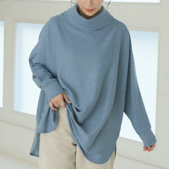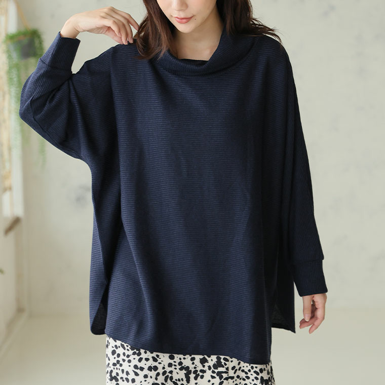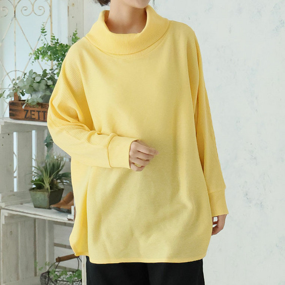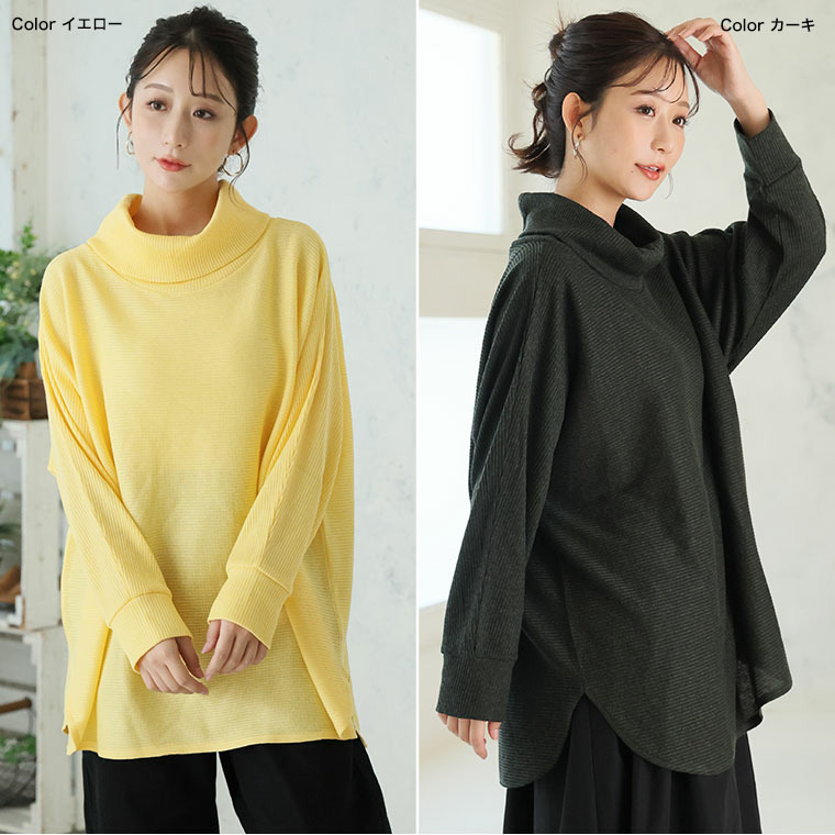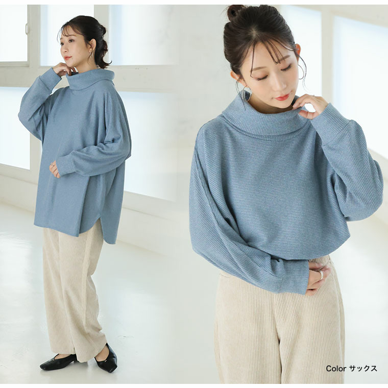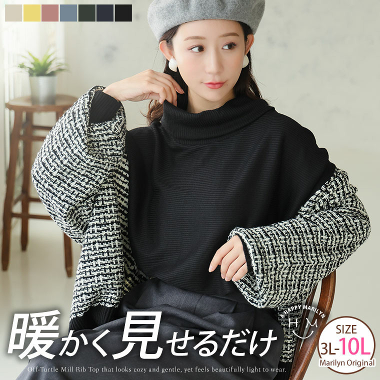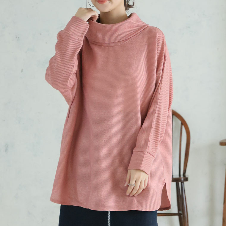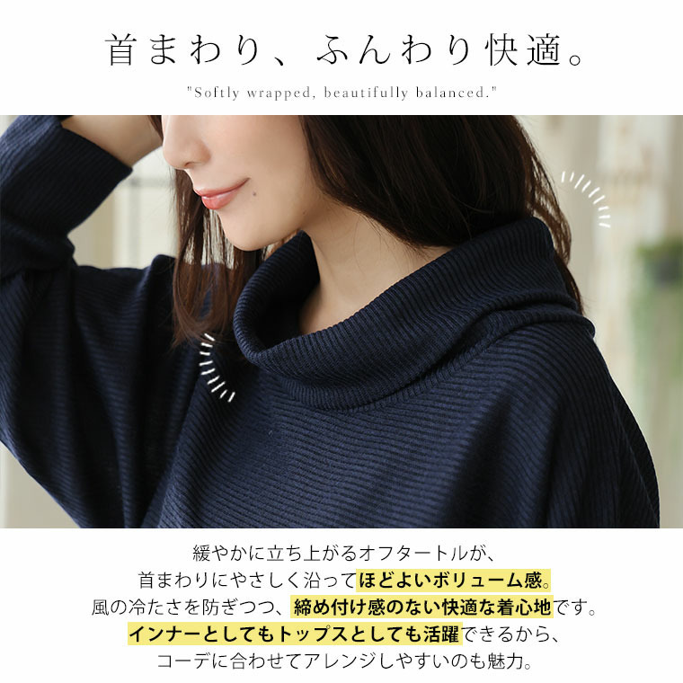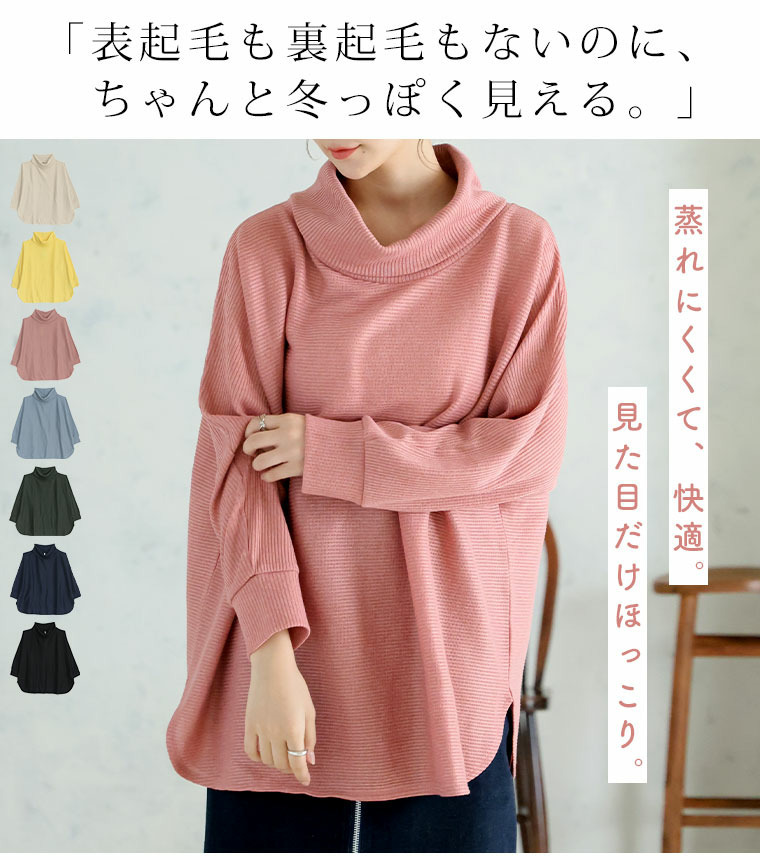 暑がりサンの為の「あったかく見せる。」 オフタートル ミルリブ トップス