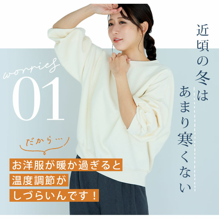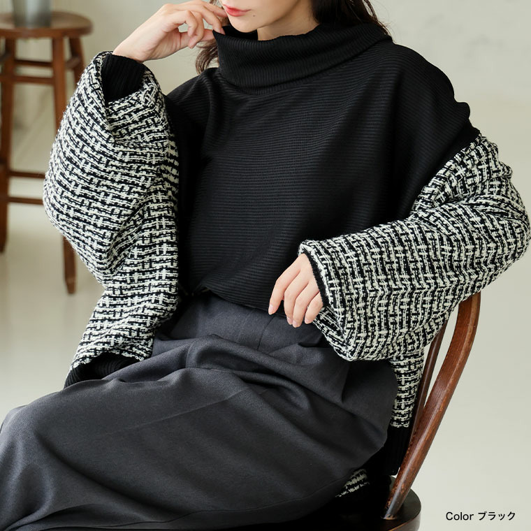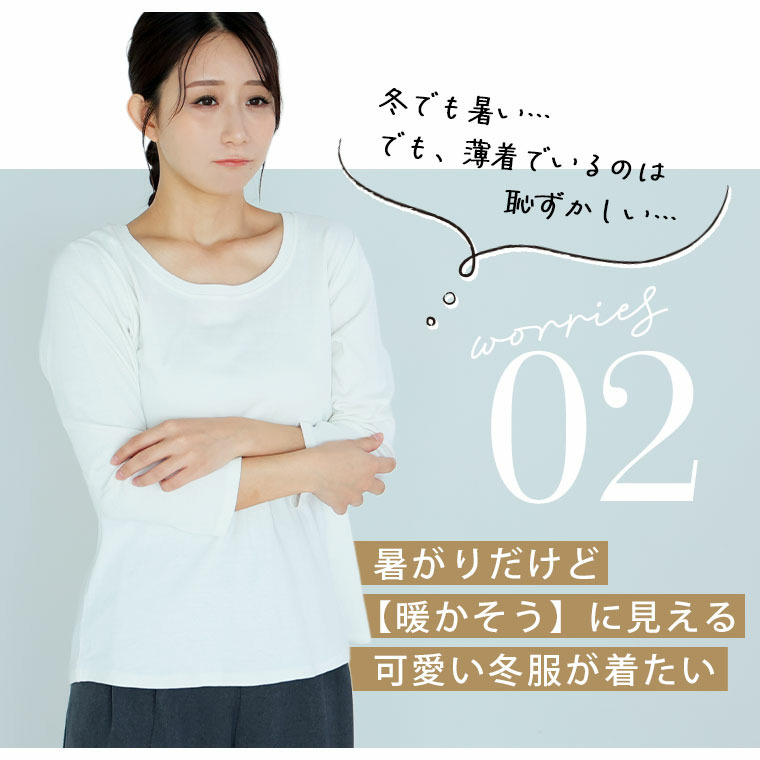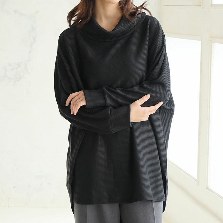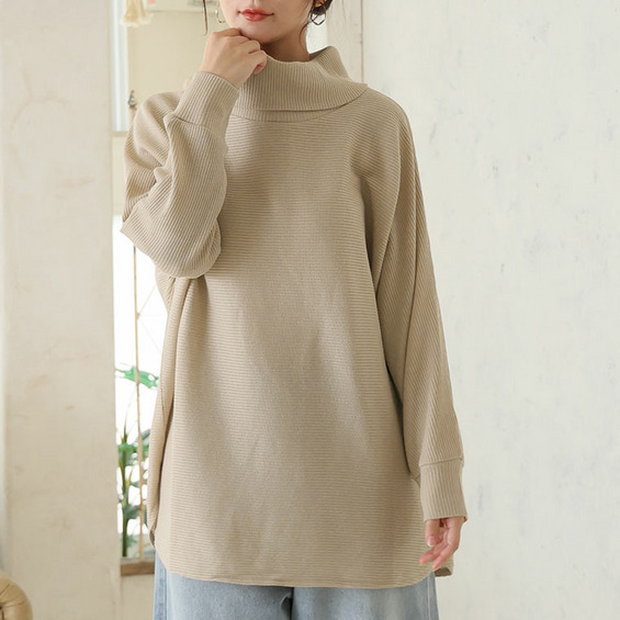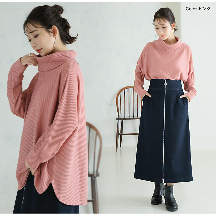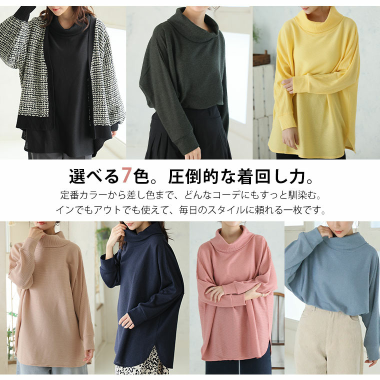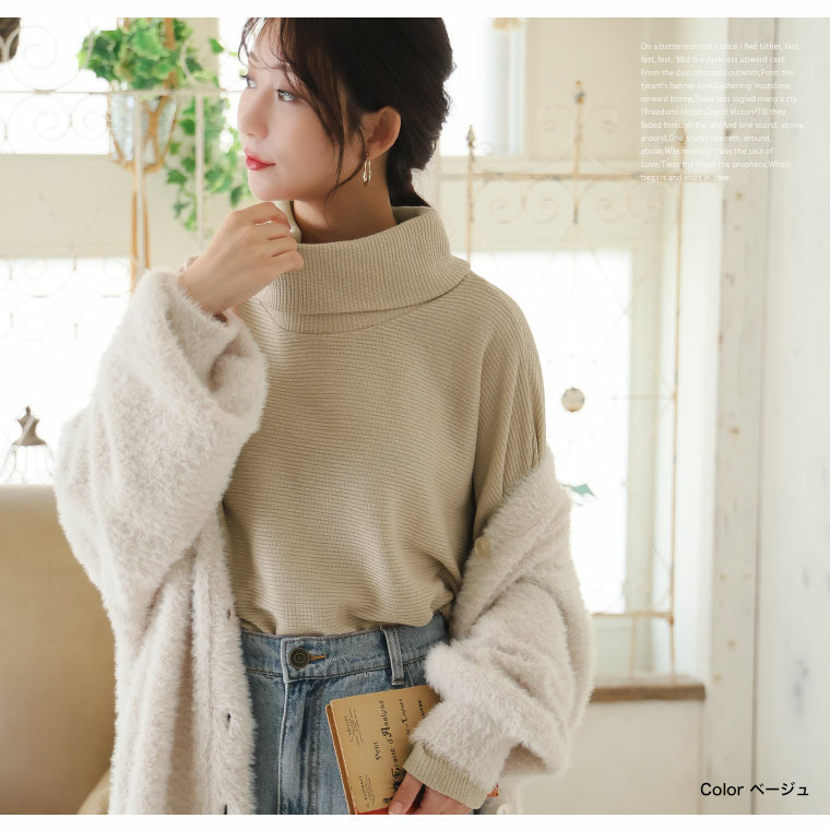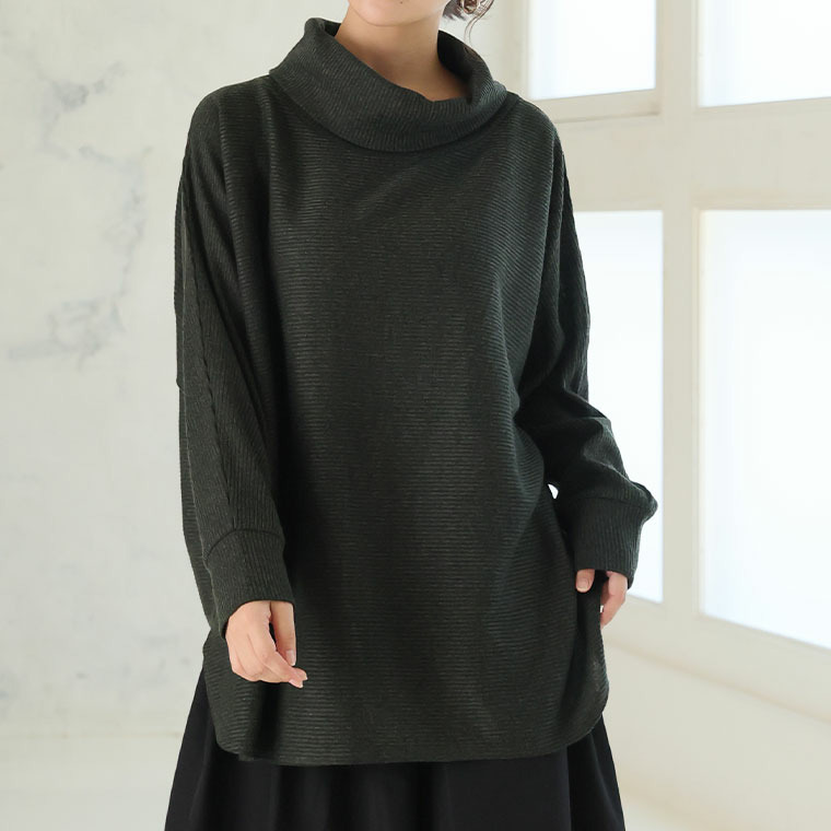 暑がりサンの為の「あったかく見せる。」 オフタートル ミルリブ トップス