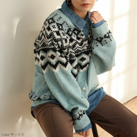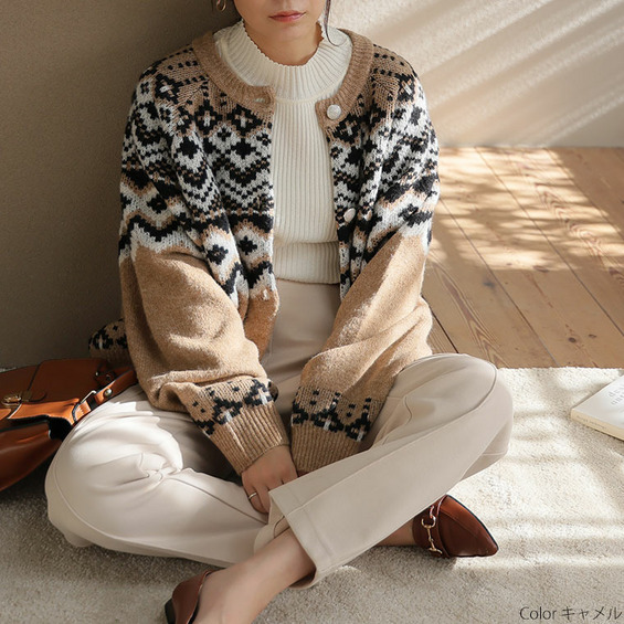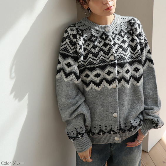ノルディック ジャガード ニット カーディガン