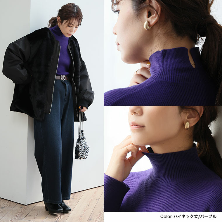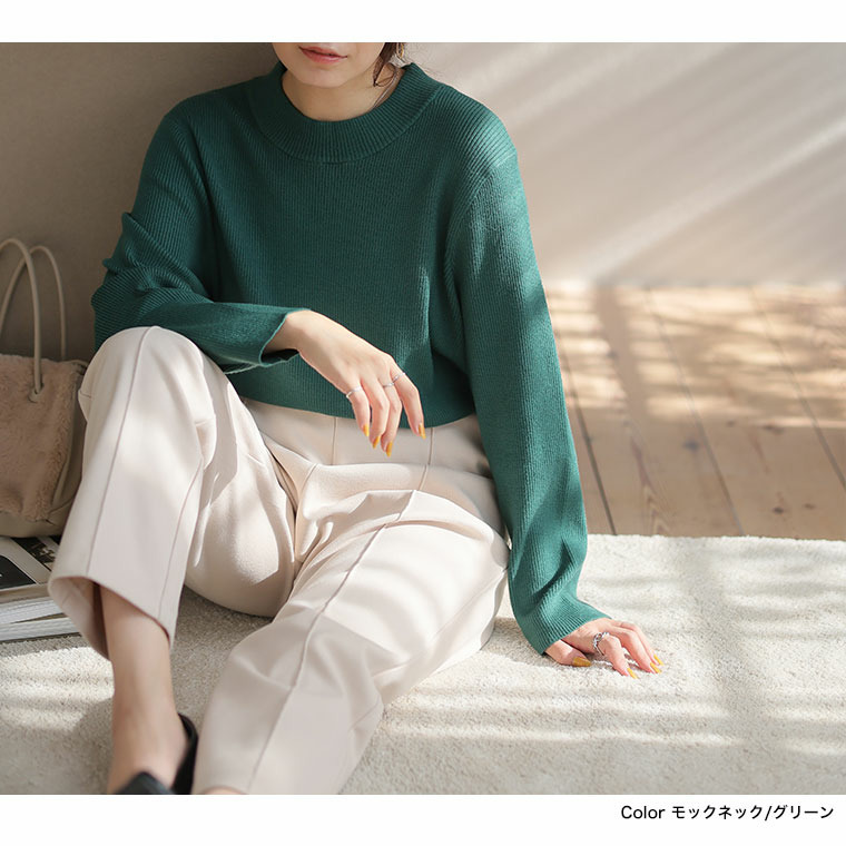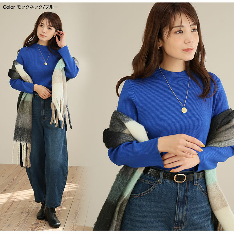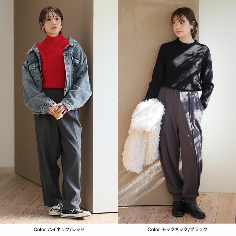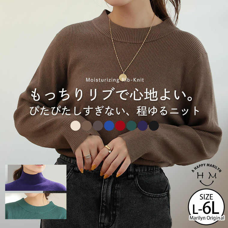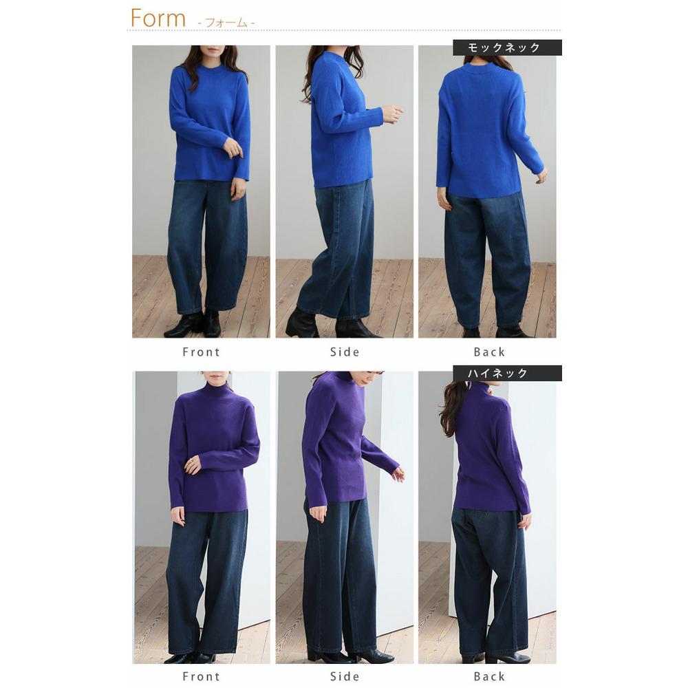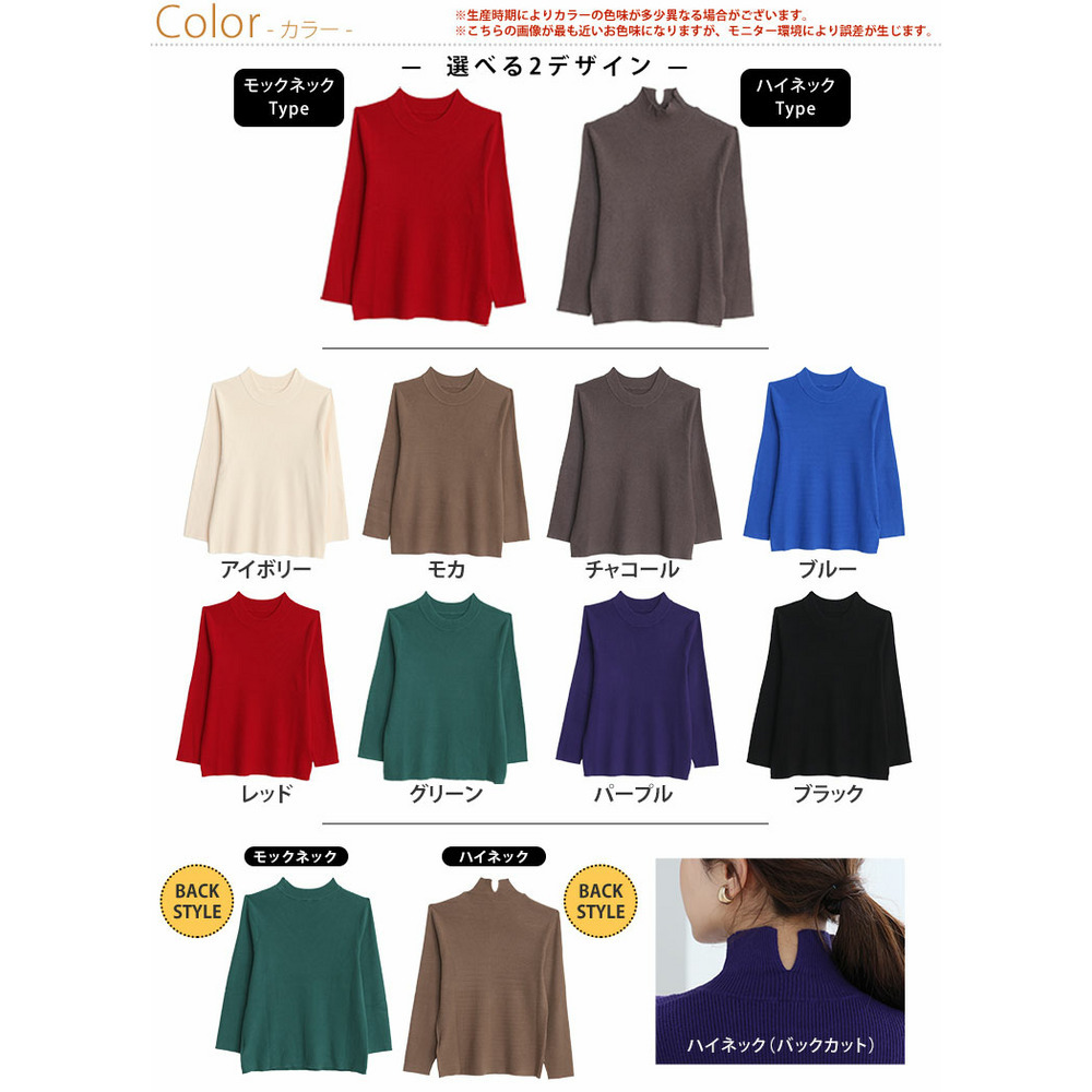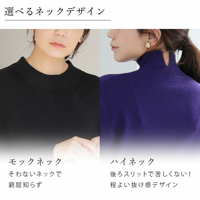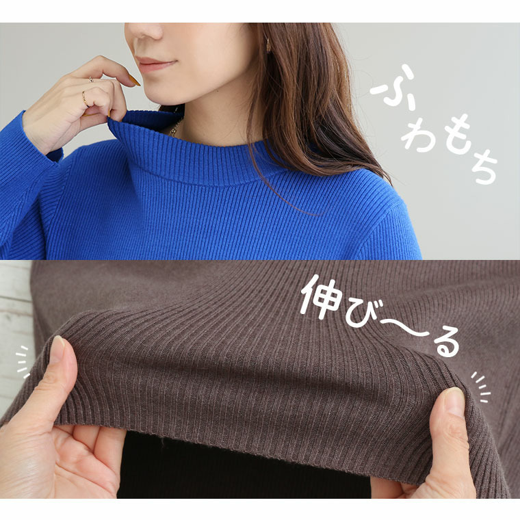 モックネック/ハイネックから選べる Tシャツ感覚で着れる (もっちりver) リブ ニット