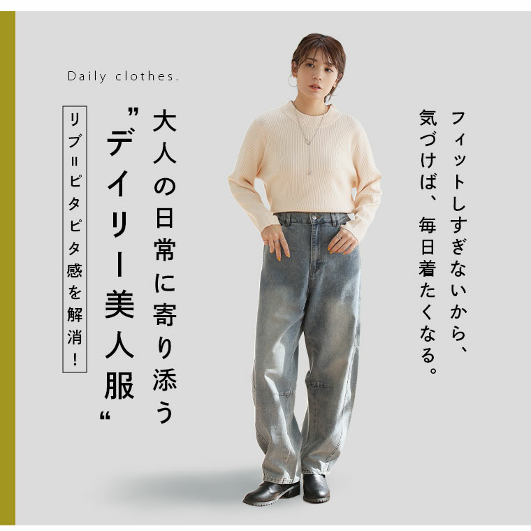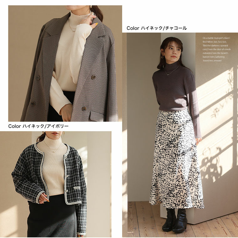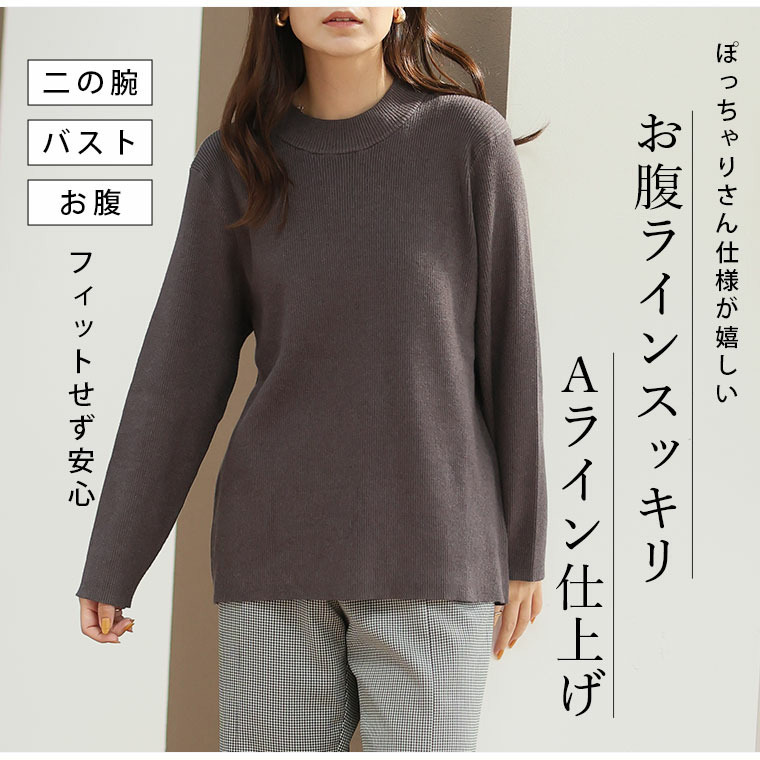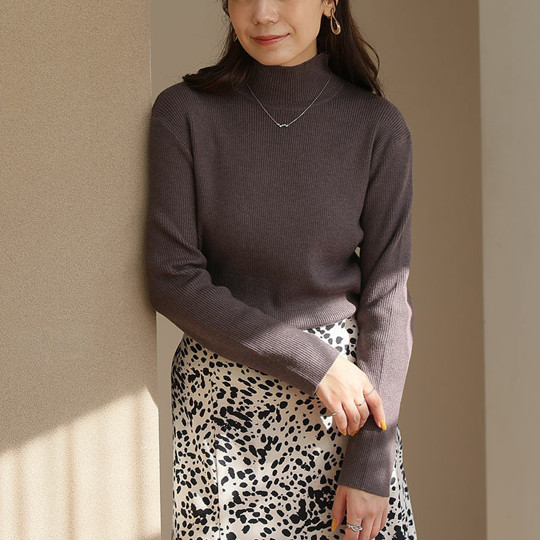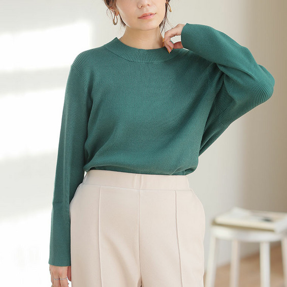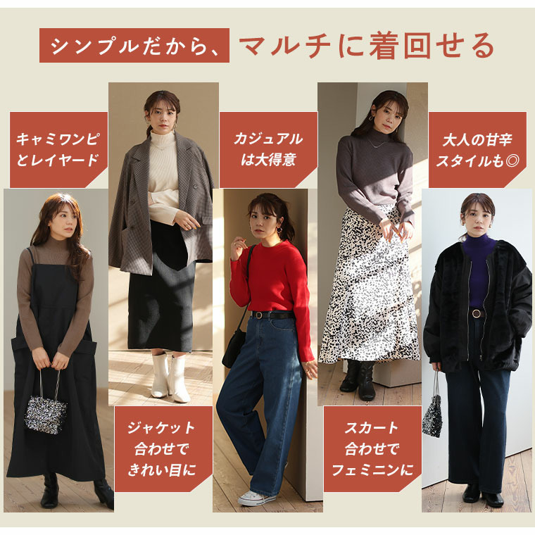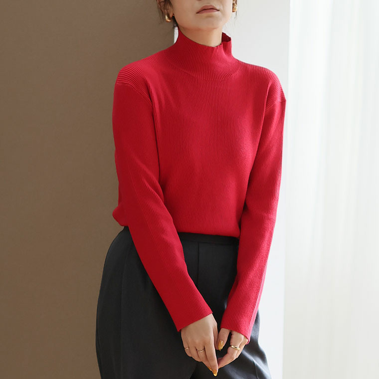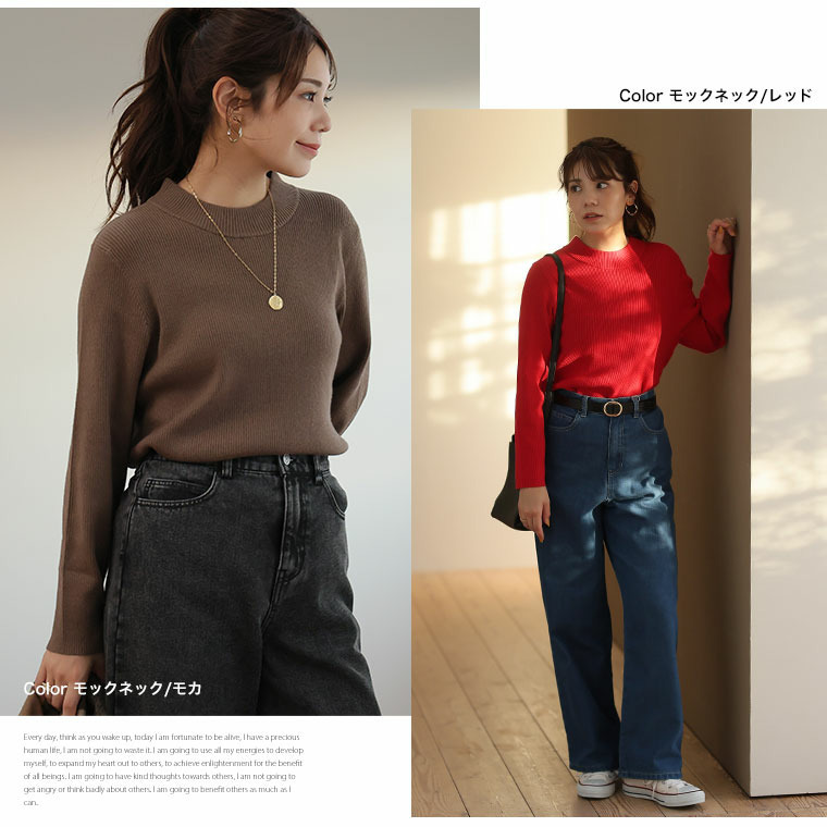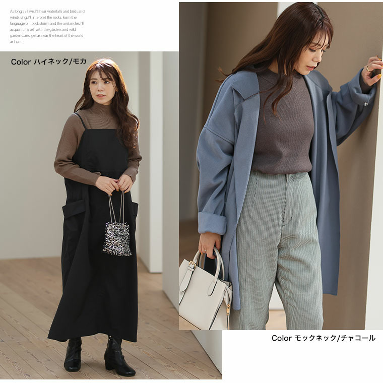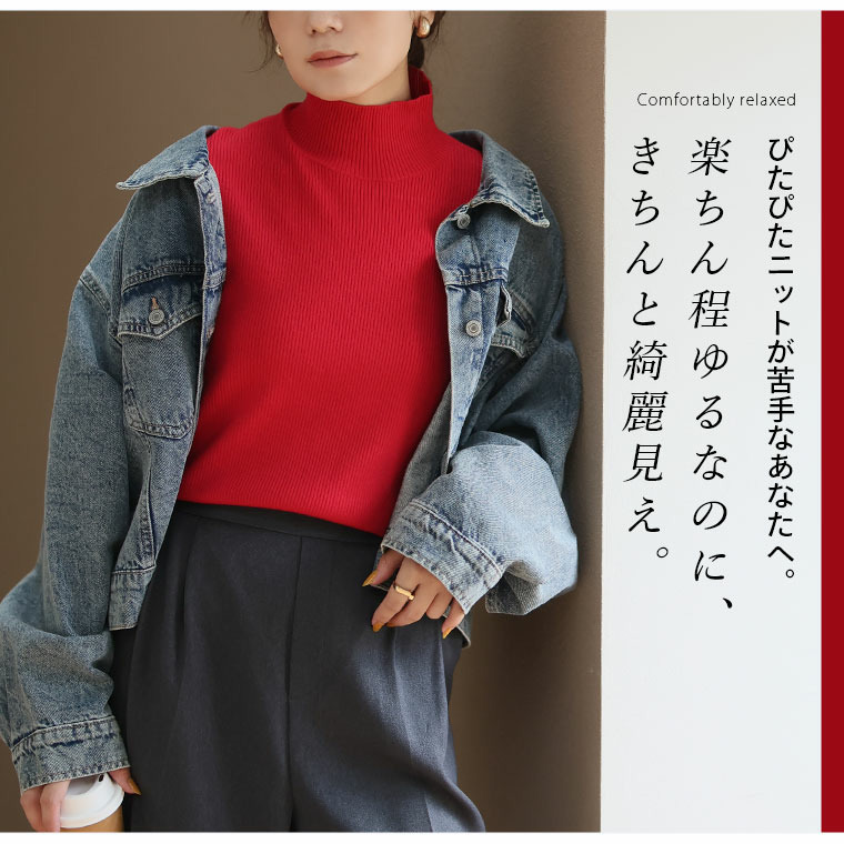 モックネック/ハイネックから選べる Tシャツ感覚で着れる (もっちりver) リブ ニット
