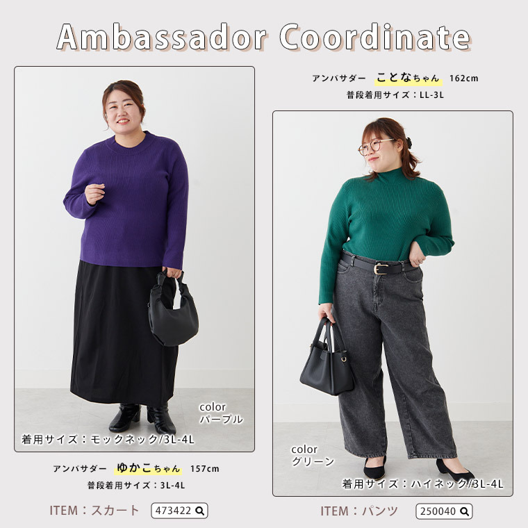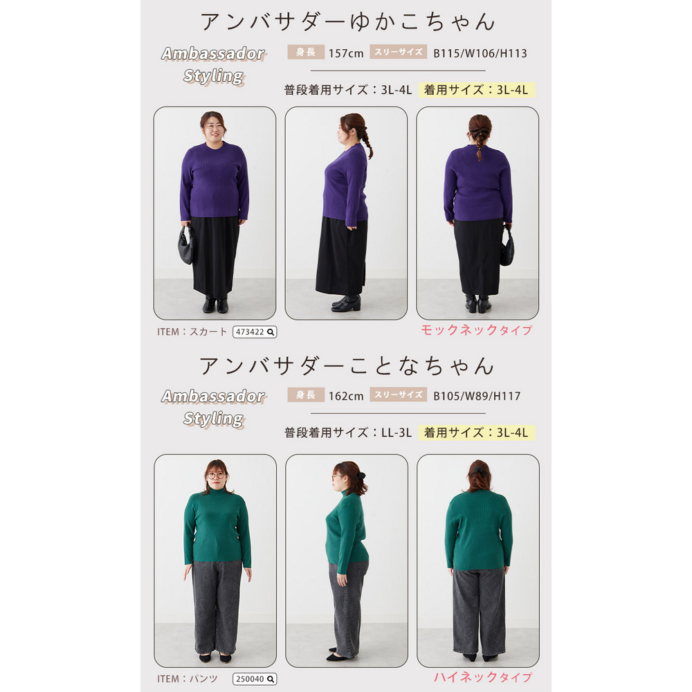 モックネック/ハイネックから選べる Tシャツ感覚で着れる (もっちりver) リブ ニット