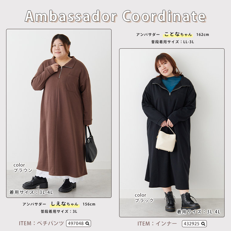 • ハーフジップで小顔魅せ 蒸れない 裏毛 スウェットワンピース20