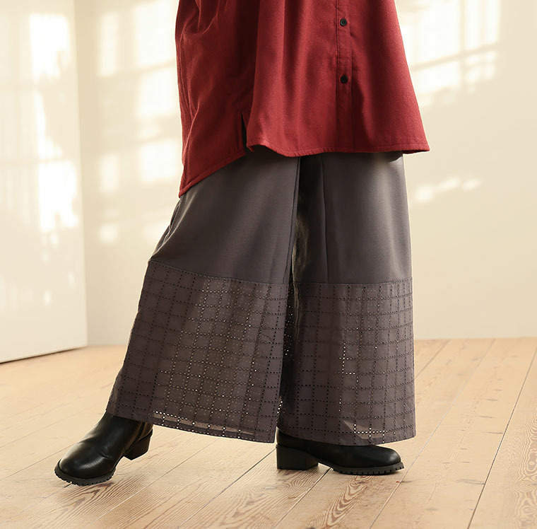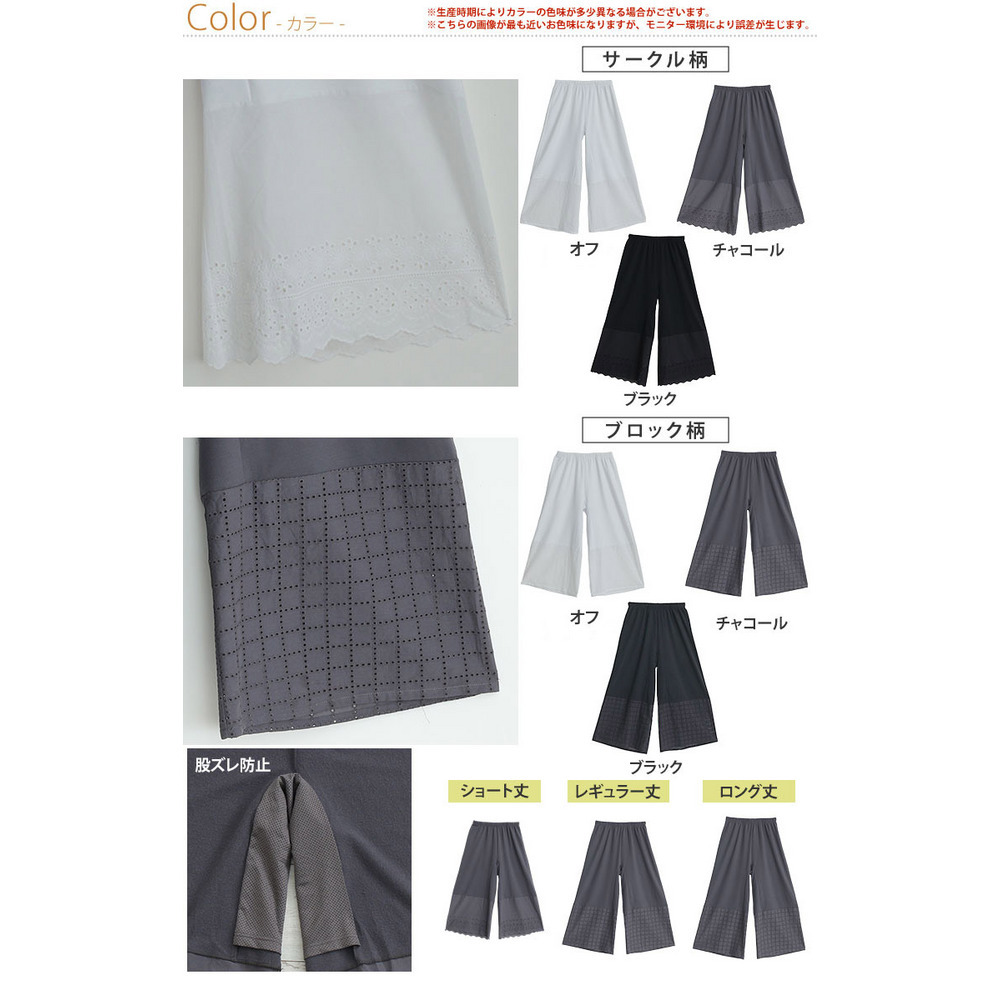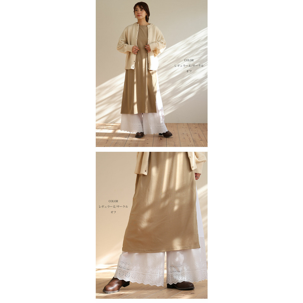 | 素材 | 〇本体 ポリエステル62% レーヨン33% ポリウレタン5% 〇レース部分 基布:綿100% 刺繍糸:綿100% 〇別布 ポリエステル90% ポリウレタン10% |