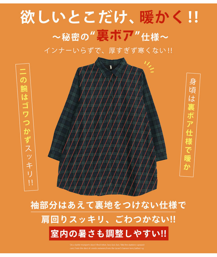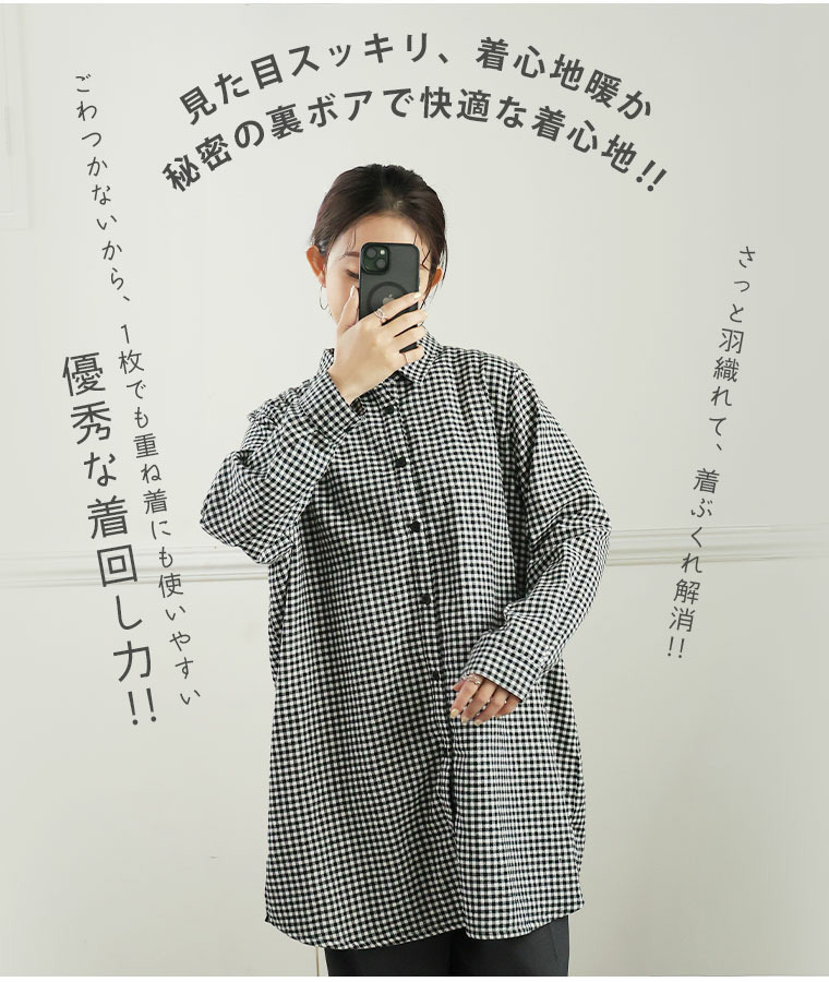 • 選べる2カタ 冬のお悩み解消! ごわつき・着ぶくれ回避 秘密の裏ボア あったか チェック シャツ 裏起毛12