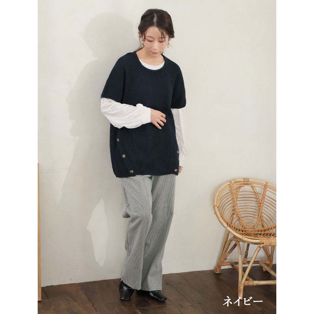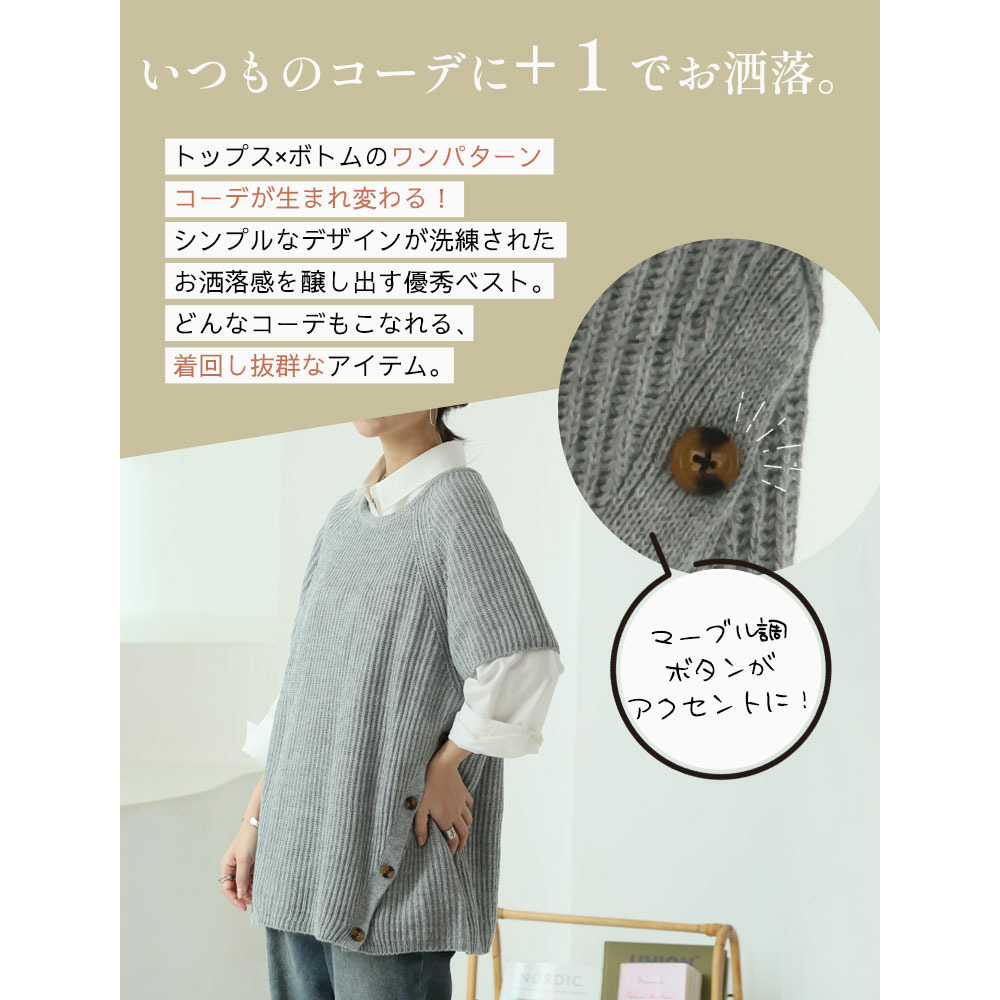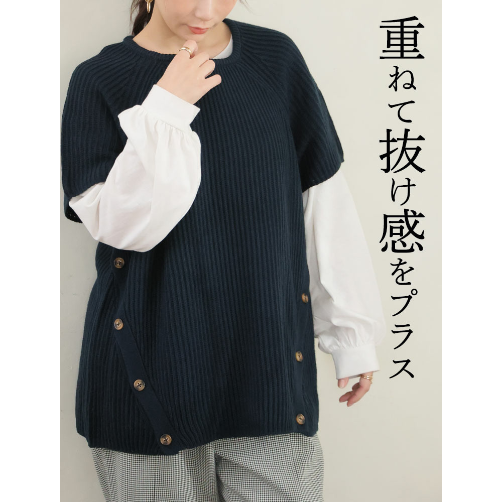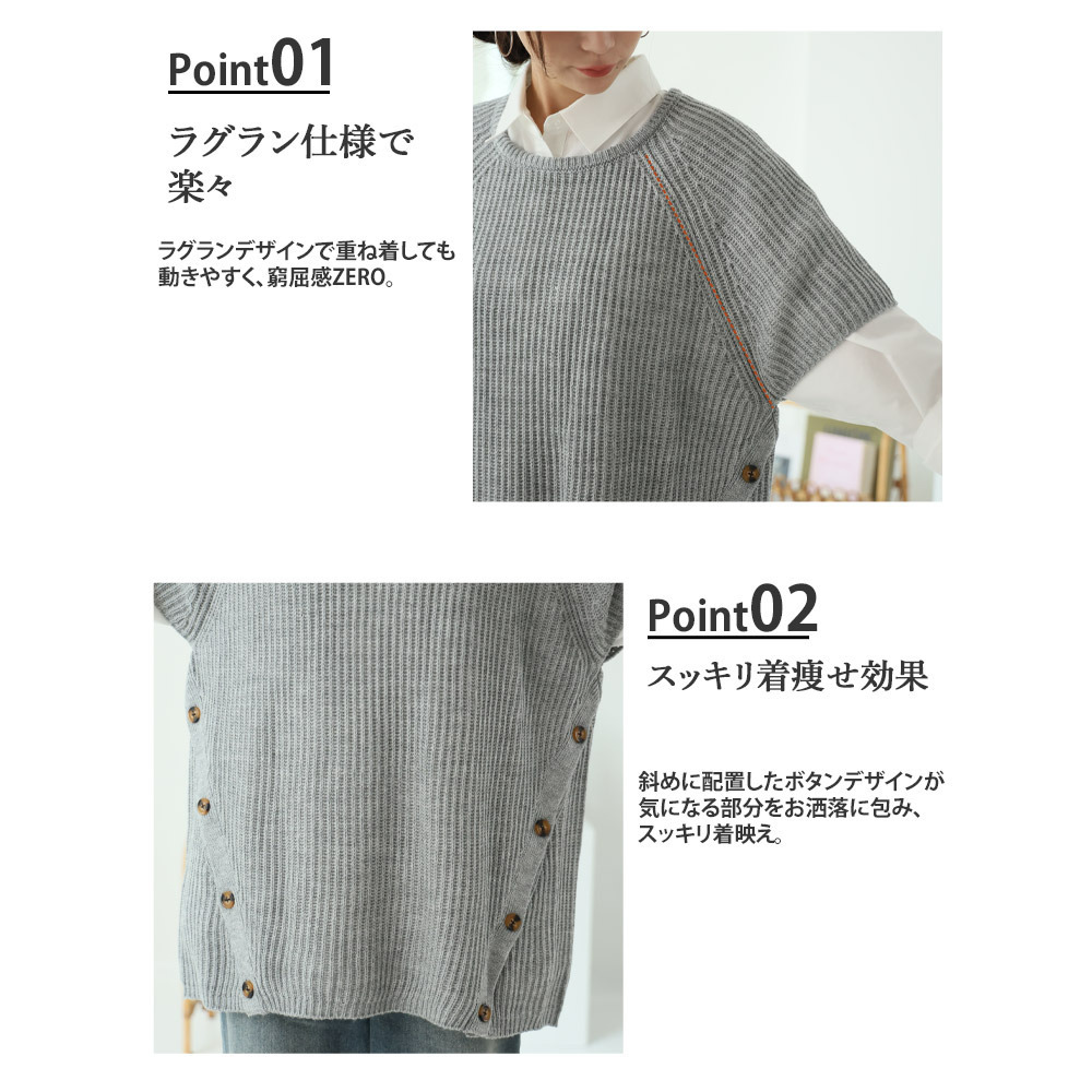 ボタンデザイン ラグランニット 華奢魅せベスト