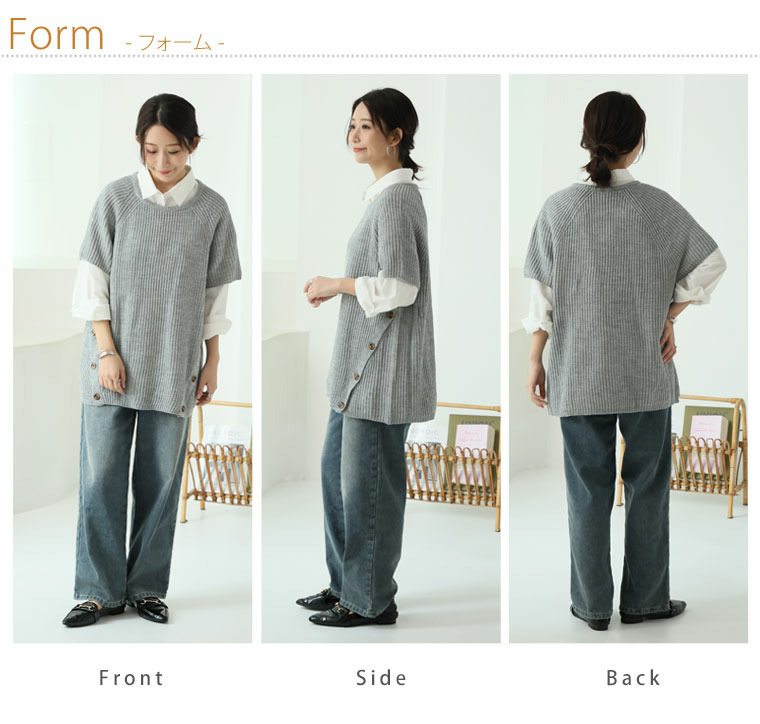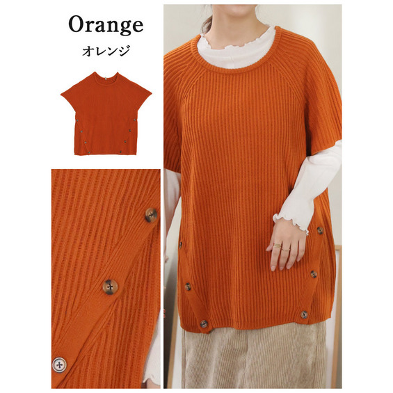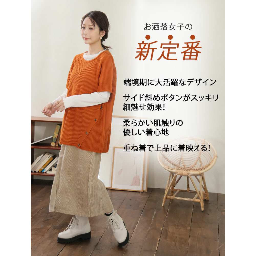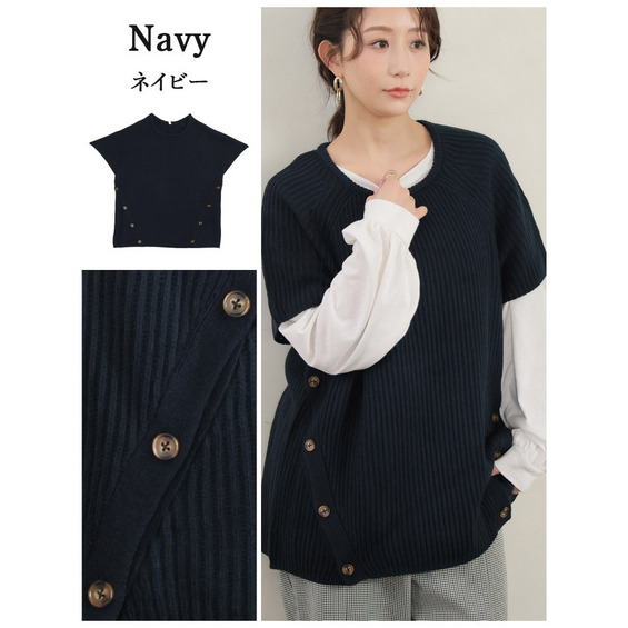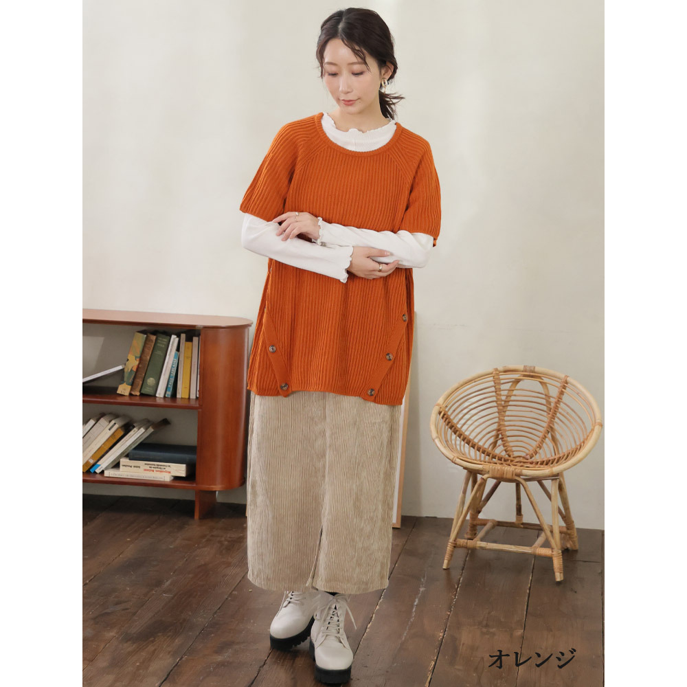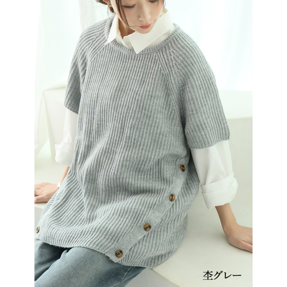 ボタンデザイン ラグランニット 華奢魅せベスト
