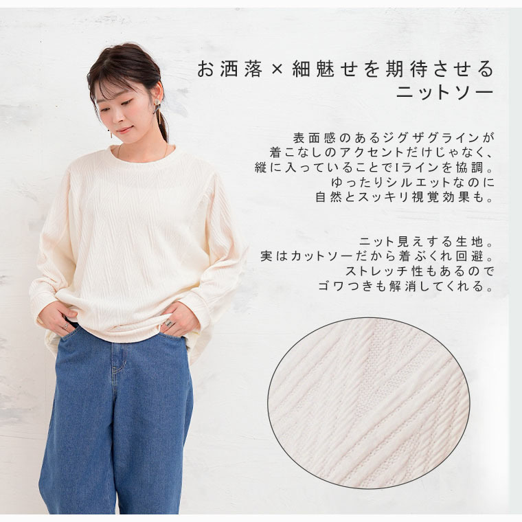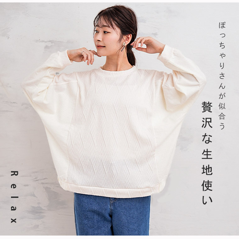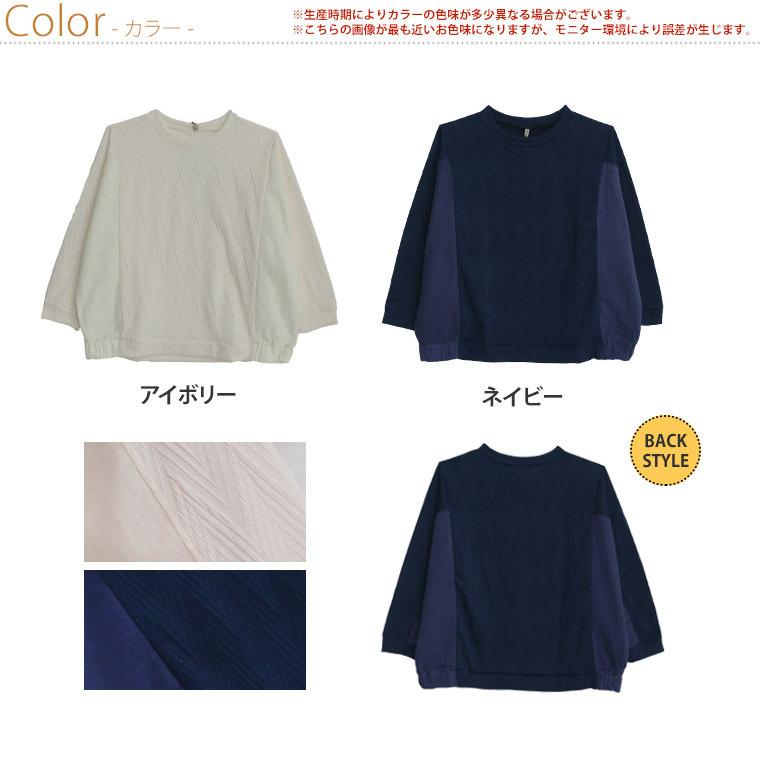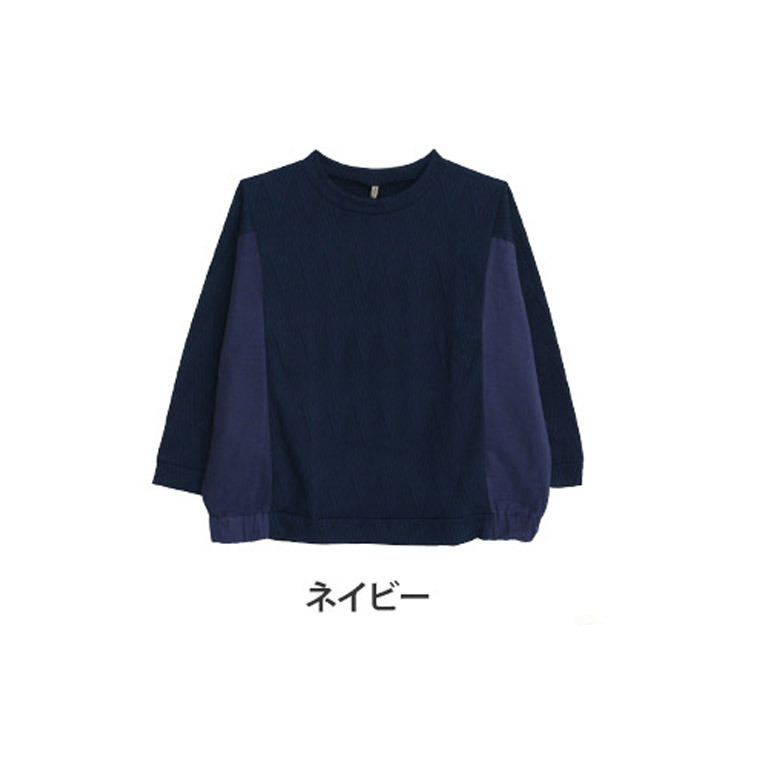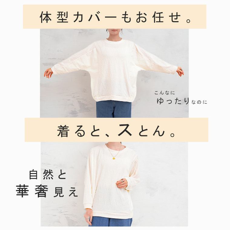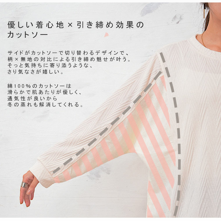 華奢魅せして体型カバー 異素材使い ドルマン切替 プルオーバー 綿100% ストレッチ
