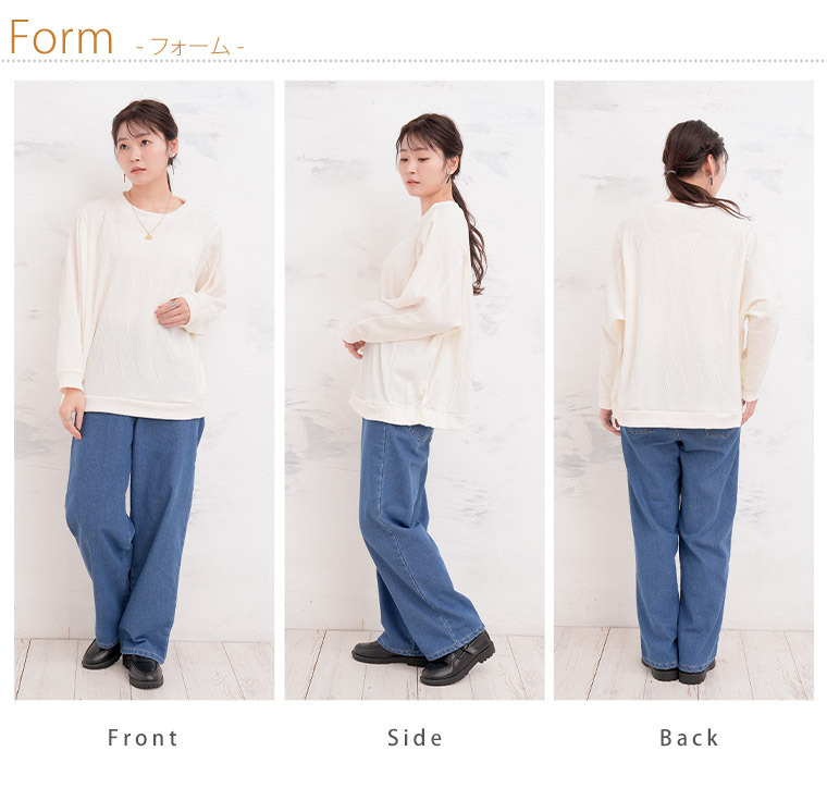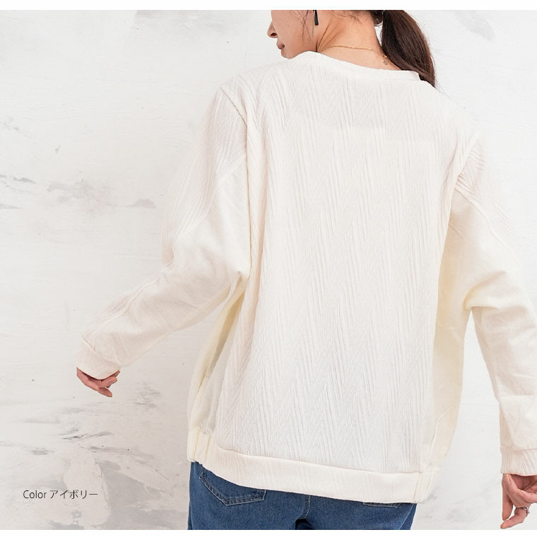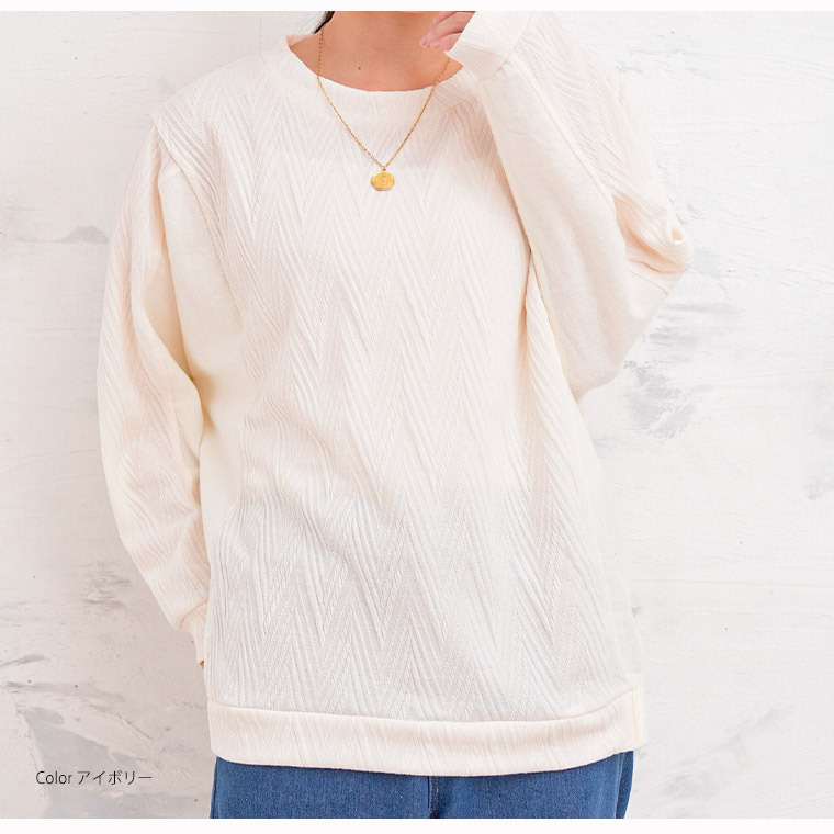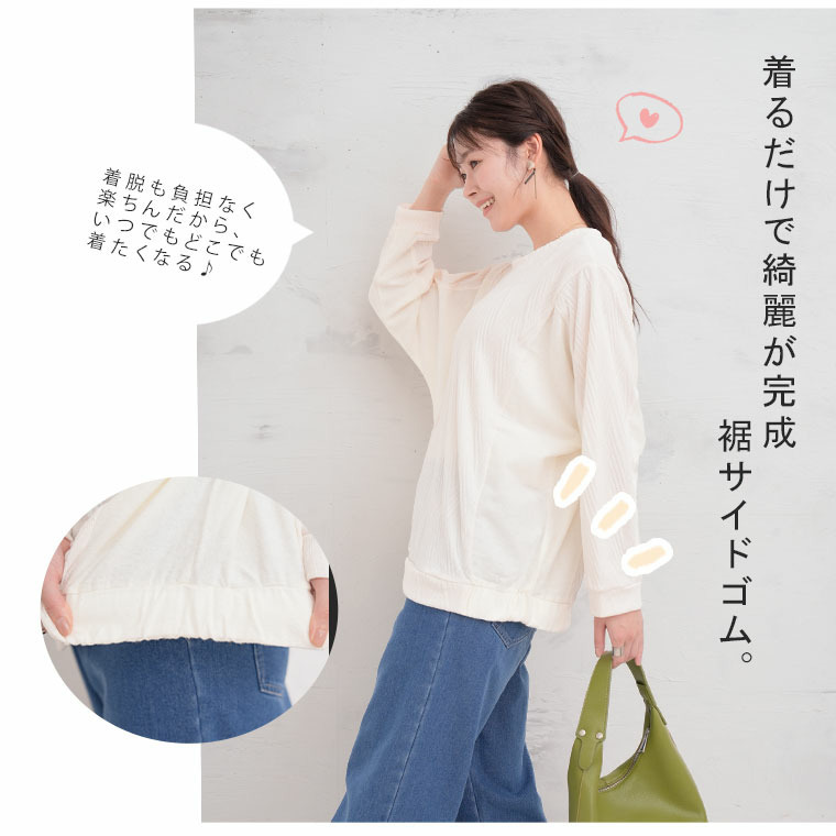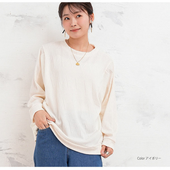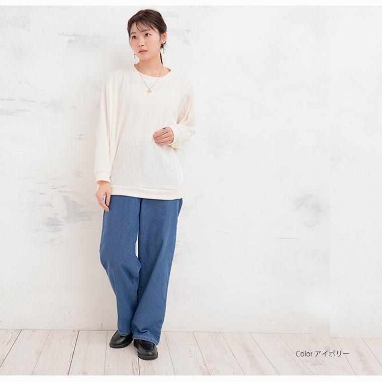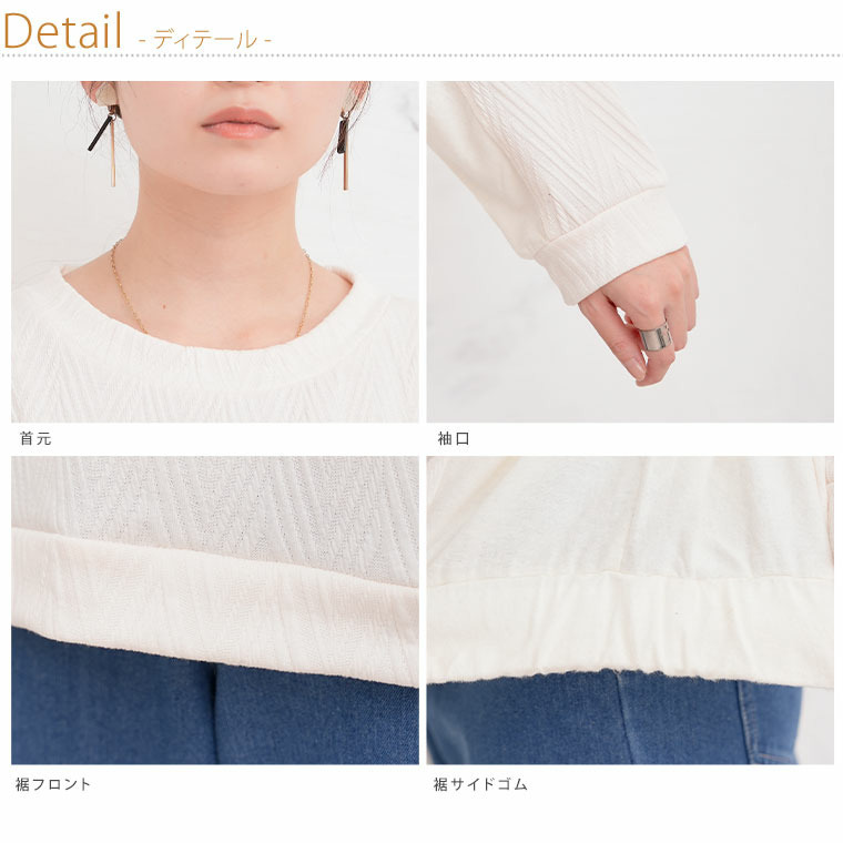 華奢魅せして体型カバー 異素材使い ドルマン切替 プルオーバー 綿100% ストレッチ
