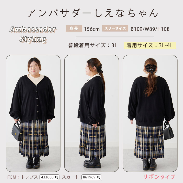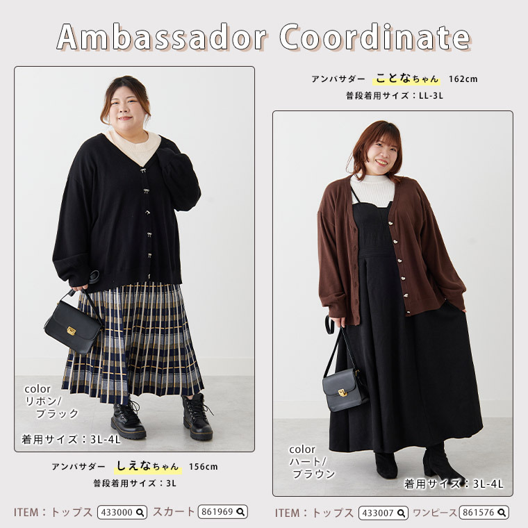 ハートとリボンで選べる! スカート派さんが嬉しい スタイルアップ もっちり Vネックカーデ