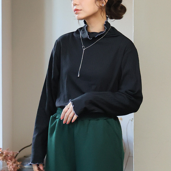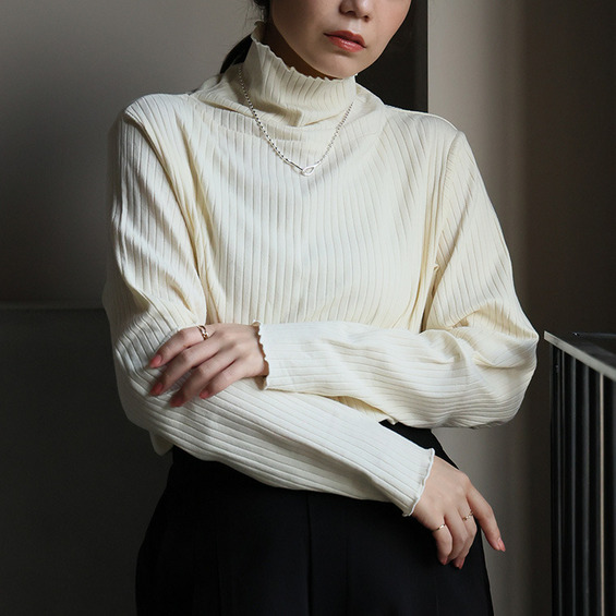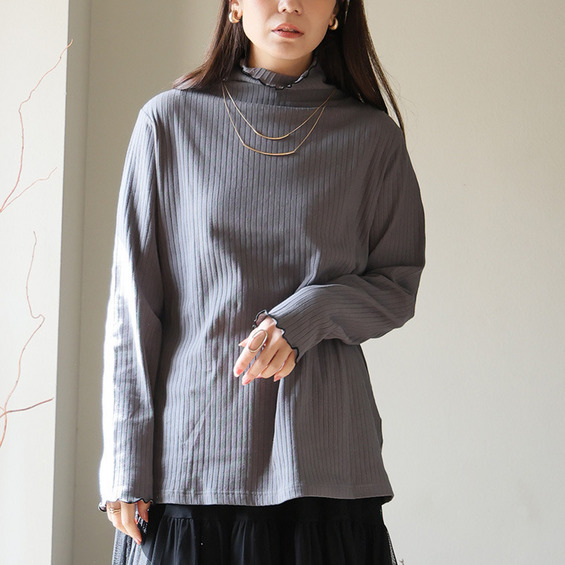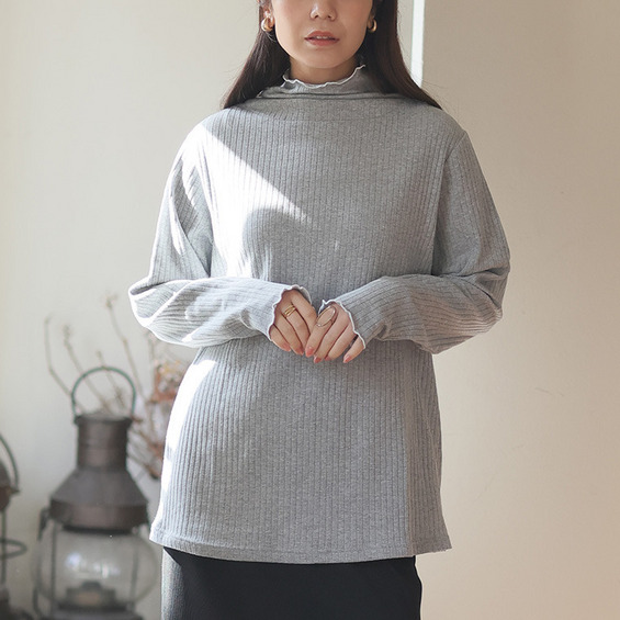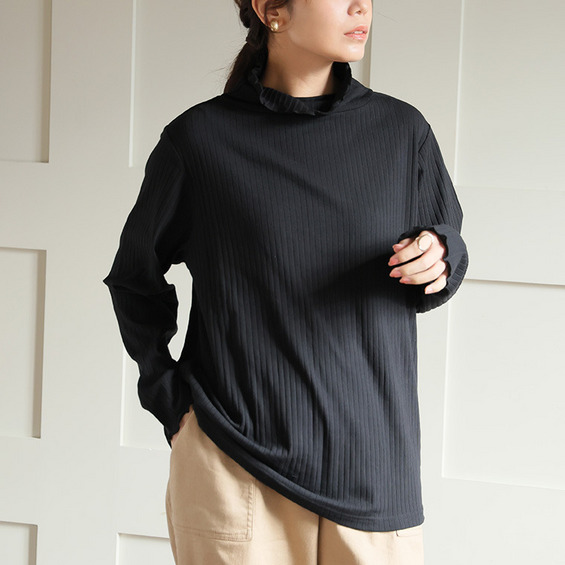 首元苦しくない! サイズと着心地に拘った 綿混 メロウ リブ トップス