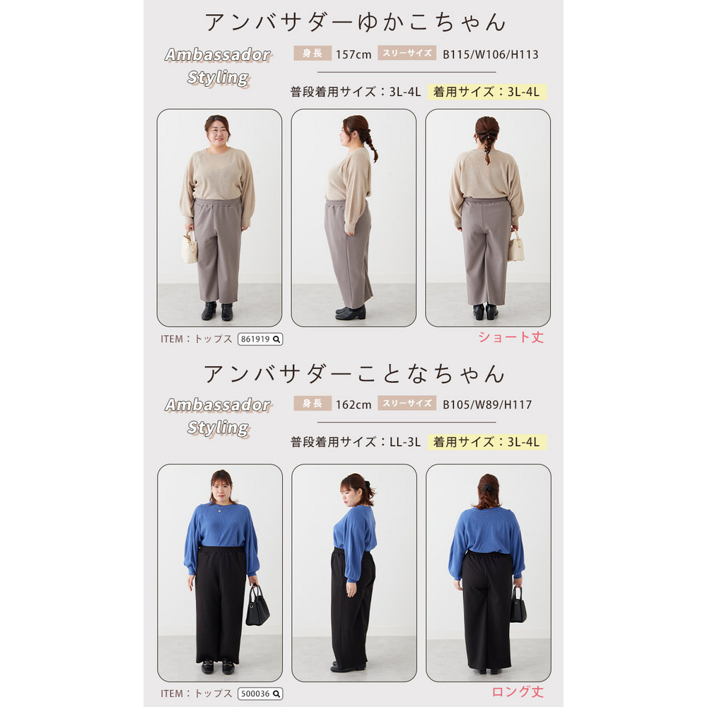 総丈91cm ウエスト94-114cm ヒップ122cm 前股上40.5cm 後股上50.5cm 太腿周り82cm 股下53cm 裾周り74cm