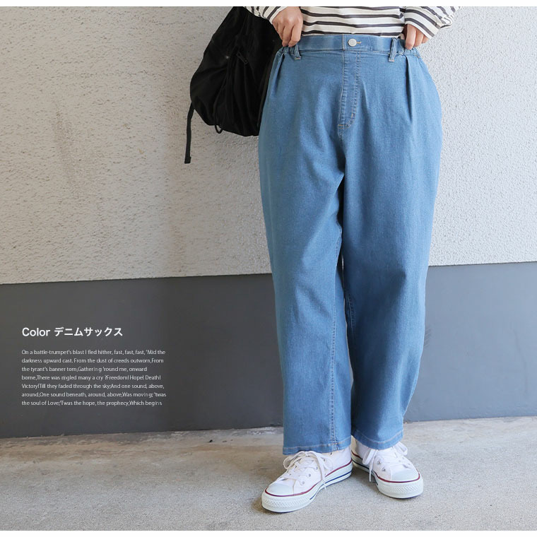 総丈91cm ウエスト100-110cm ヒップ146cm 前股上33cm 後股上43cm 太腿周り92cm 股下60cm 裾周り46cm