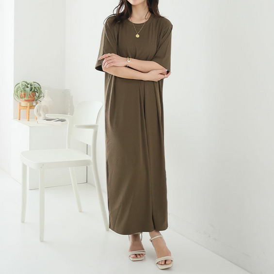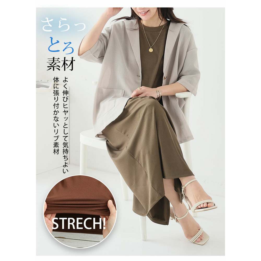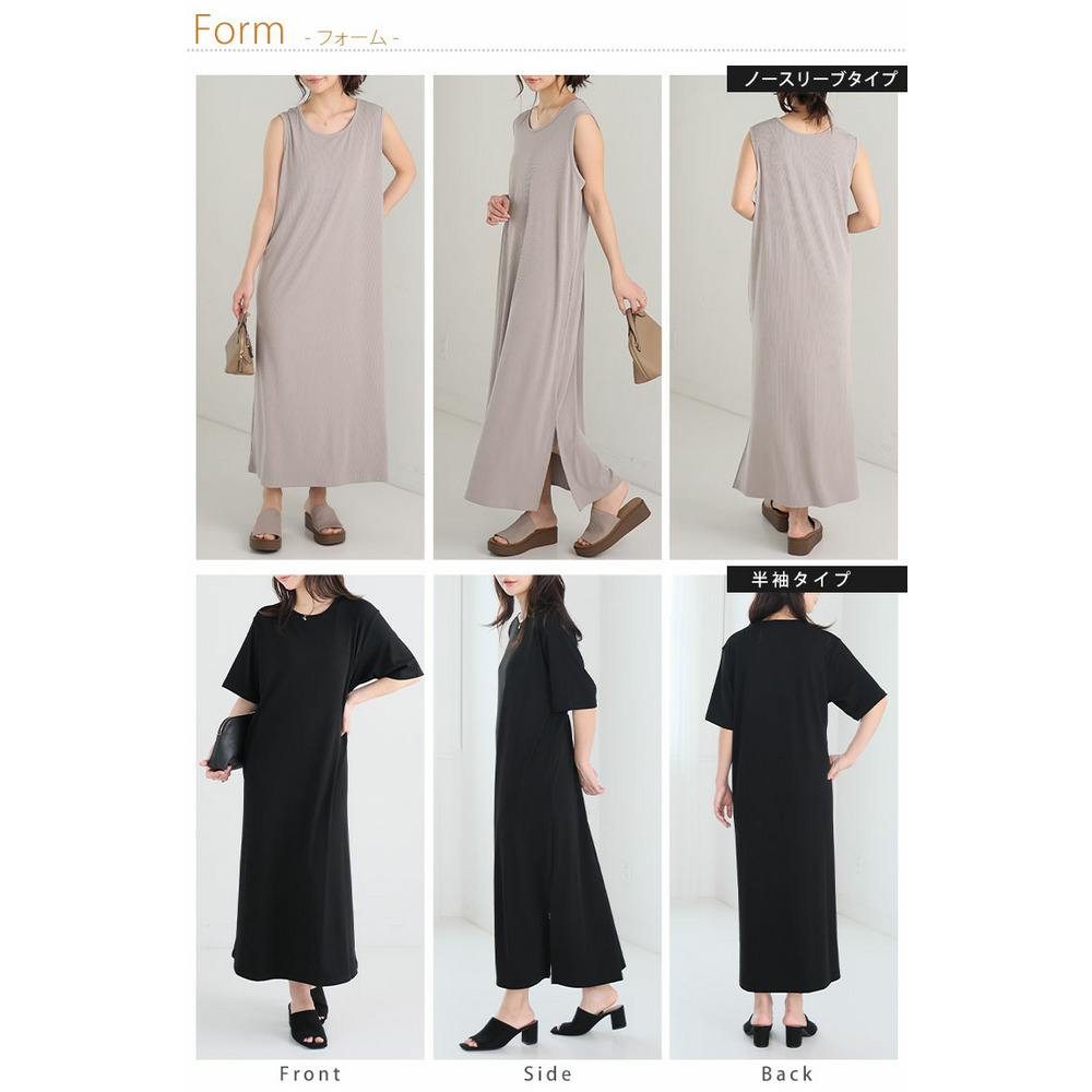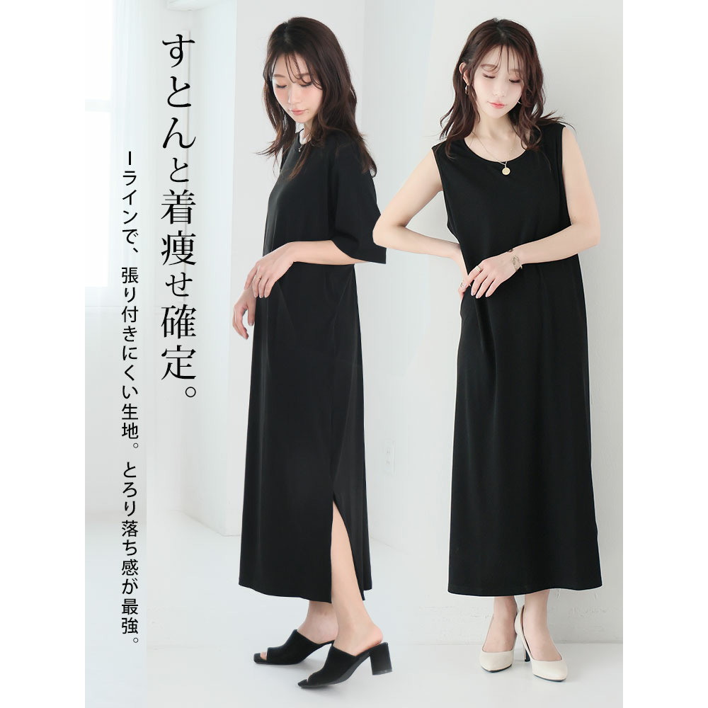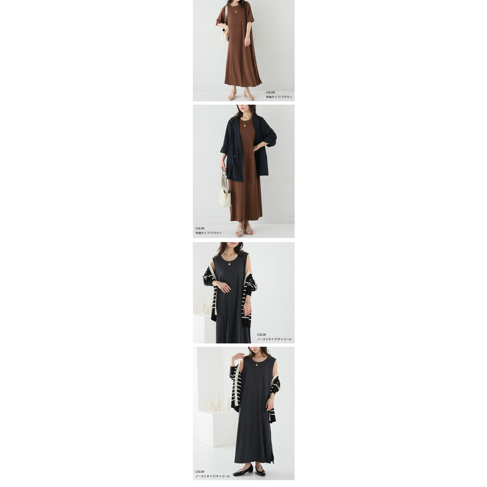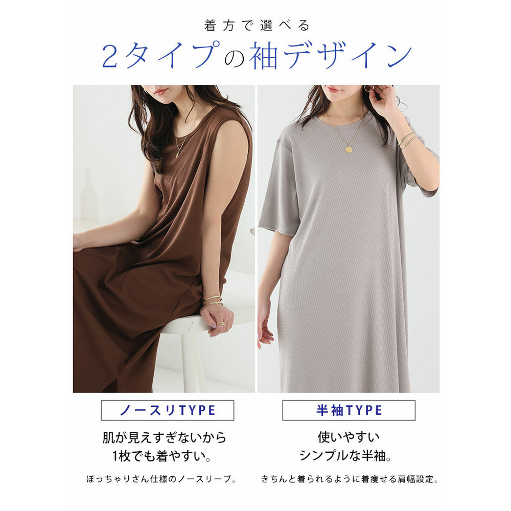 2タイプの袖から選べる! さらっとろ リブ ワンピース