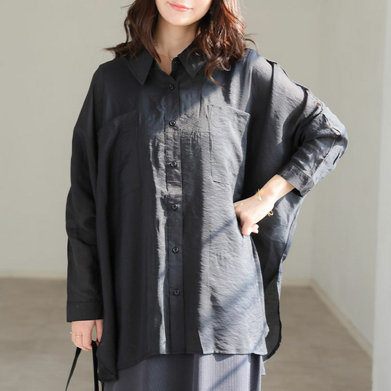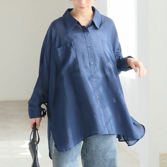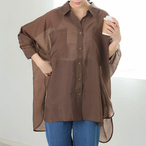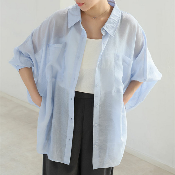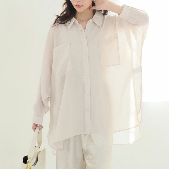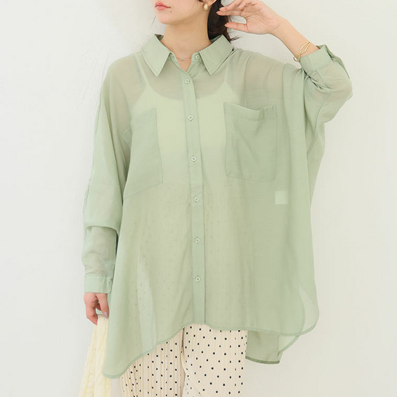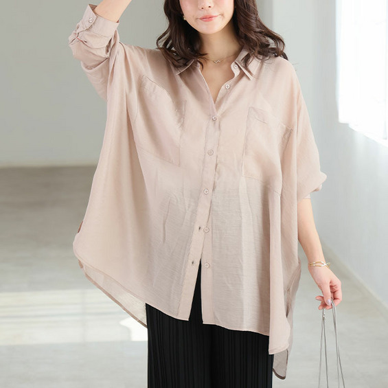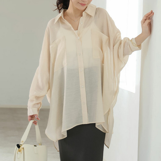 控え目な透け感で体型カバー ドルマンシルエット シアーシャツ
