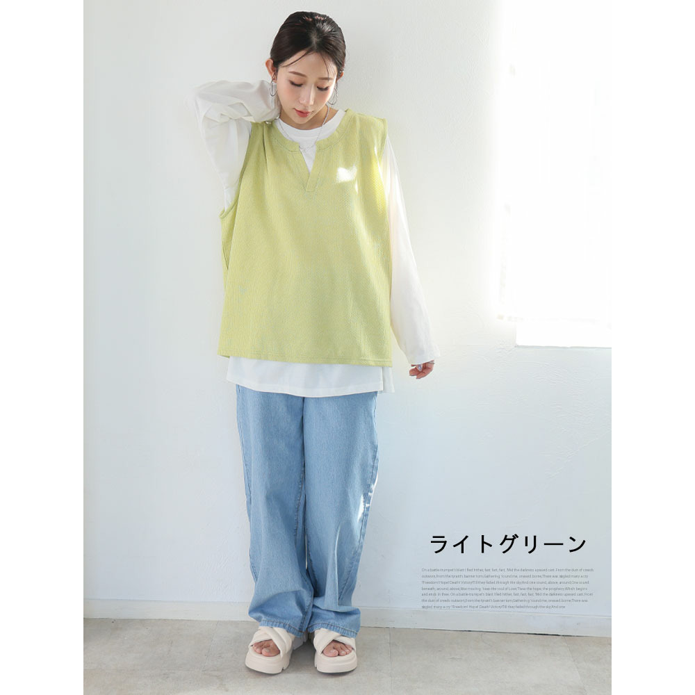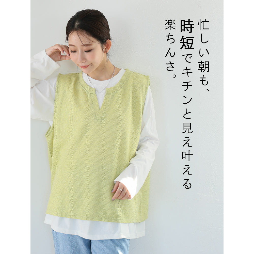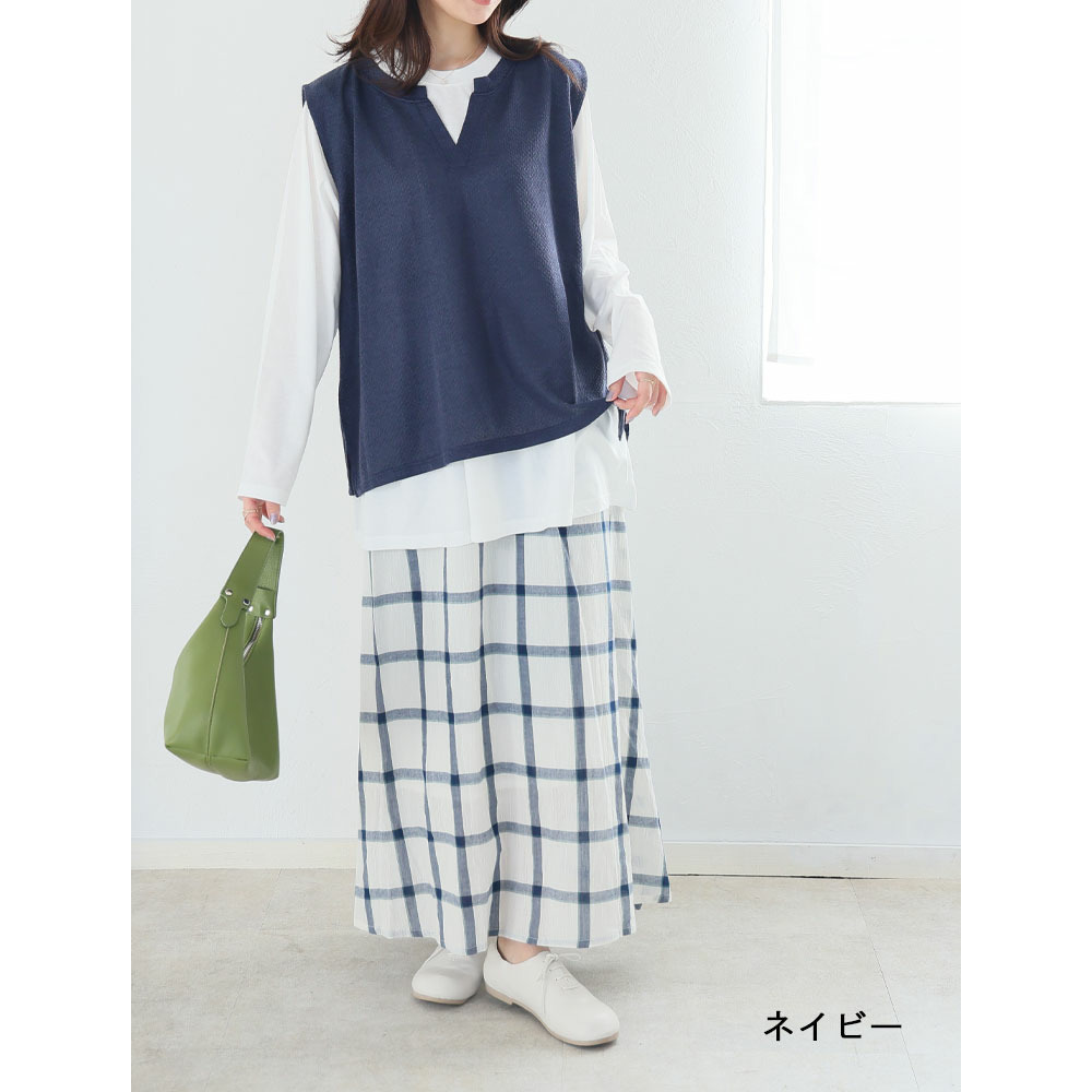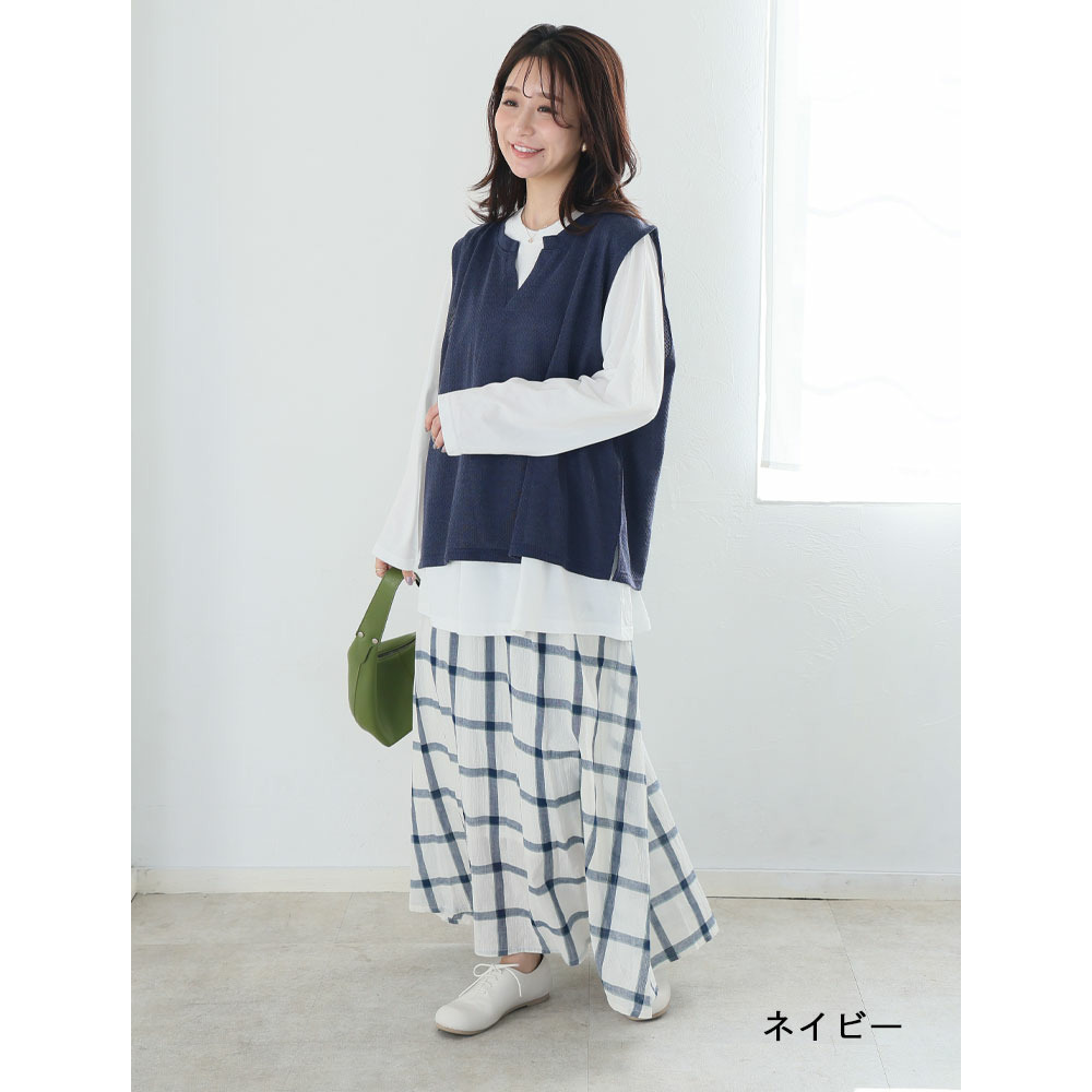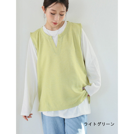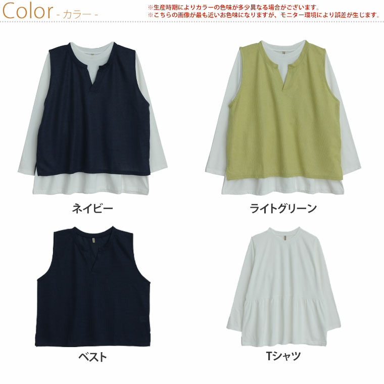 キーネック ベスト プラス フレア ブラウス にこいち