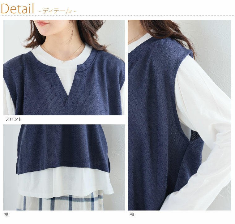 | 素材 | 〇インナー(Tシャツ) ポリエステル65% 綿35% 〇アウター (ベスト) ポリエステル95% ポリウレタン5% |