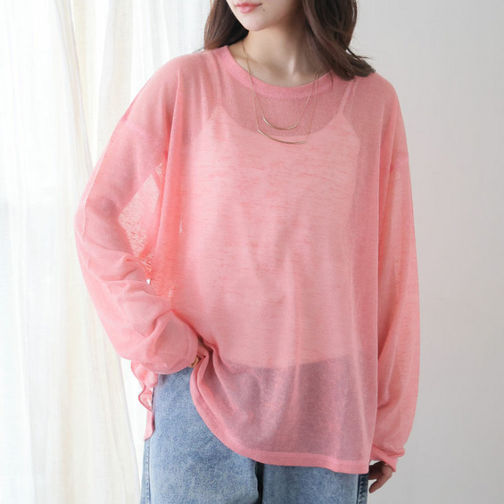 涼/軽/体型カバー スラブシアー プルオーバー