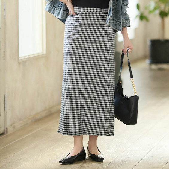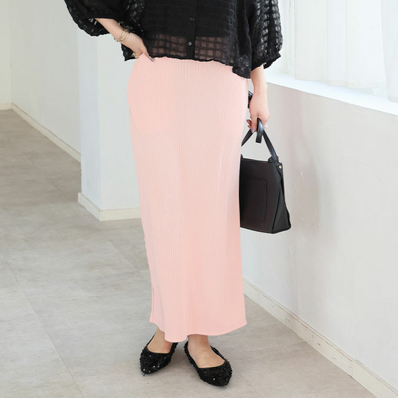 美!ストレッチ 細魅せ リブ タイトスカート