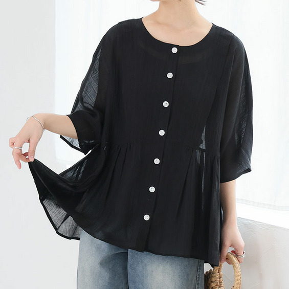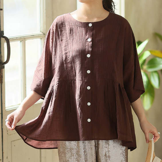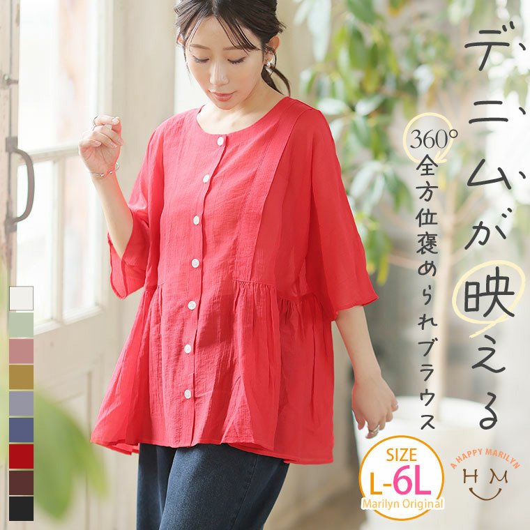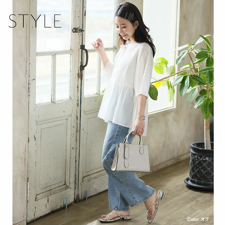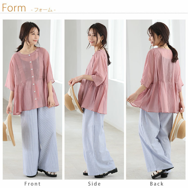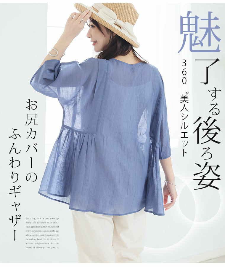 • さらり涼し気 デニムが映える 楊柳シアー 華奢魅せ タックギャザー シャツ ブラウス15