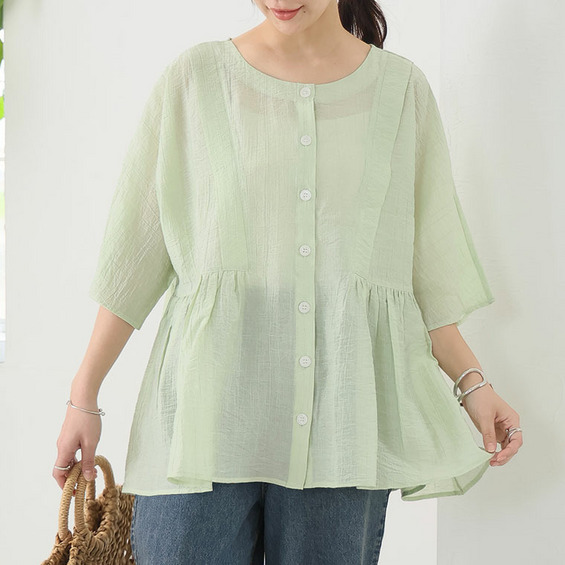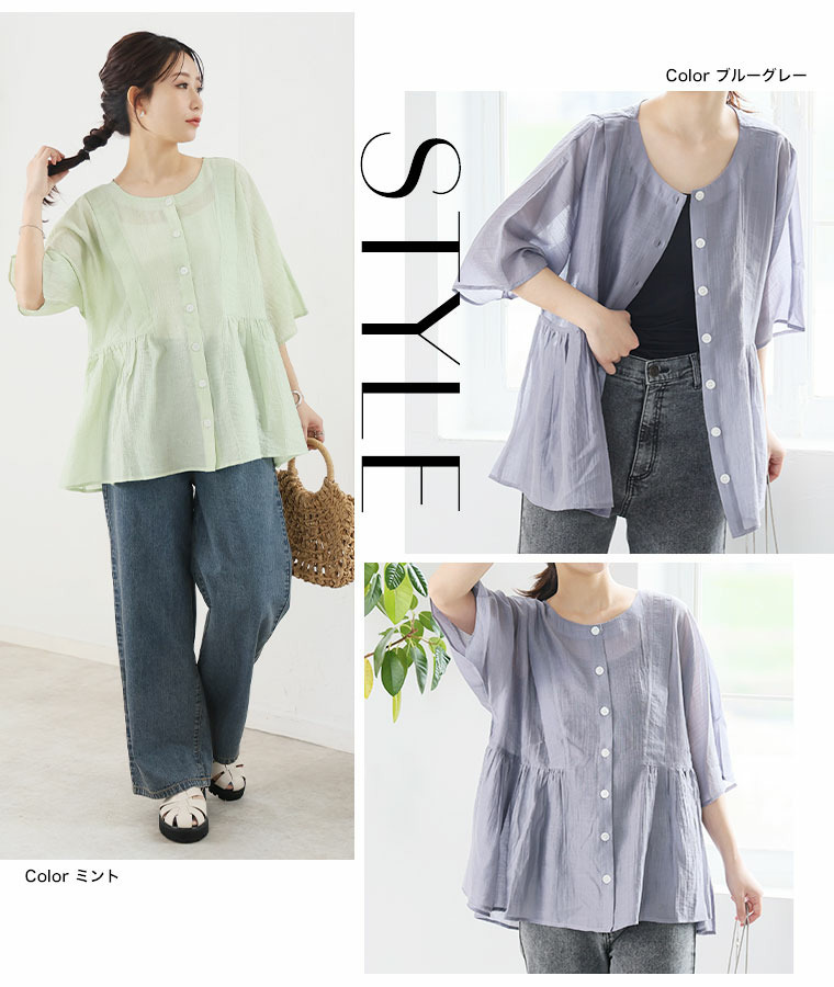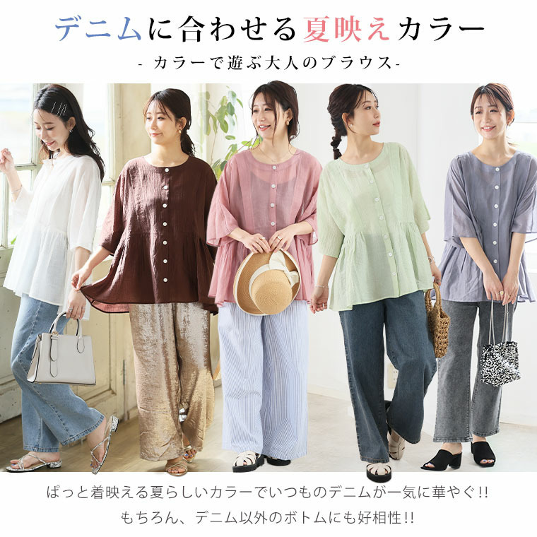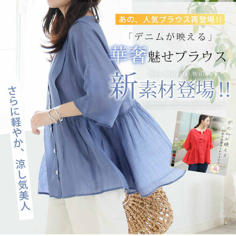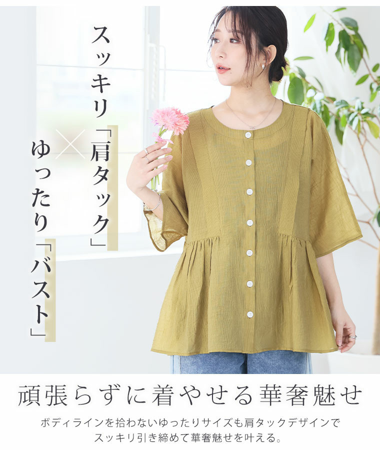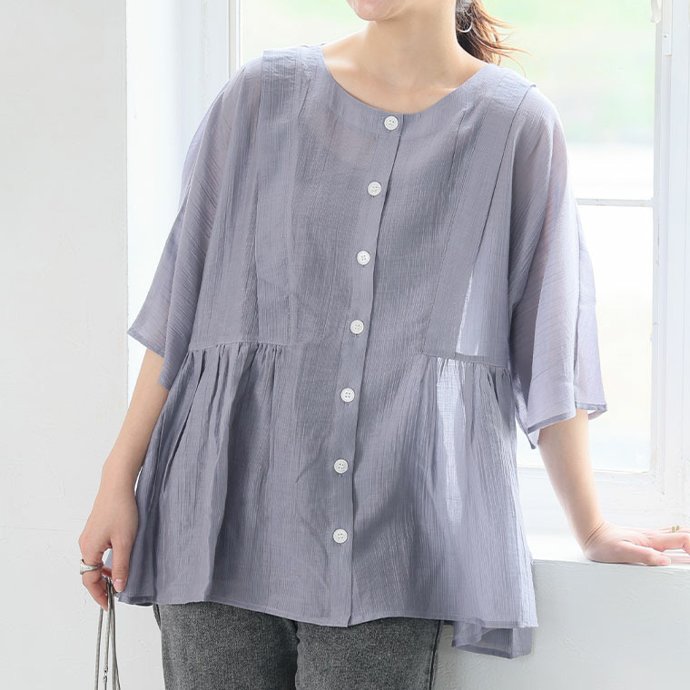• さらり涼し気 デニムが映える 楊柳シアー 華奢魅せ タックギャザー シャツ ブラウス22