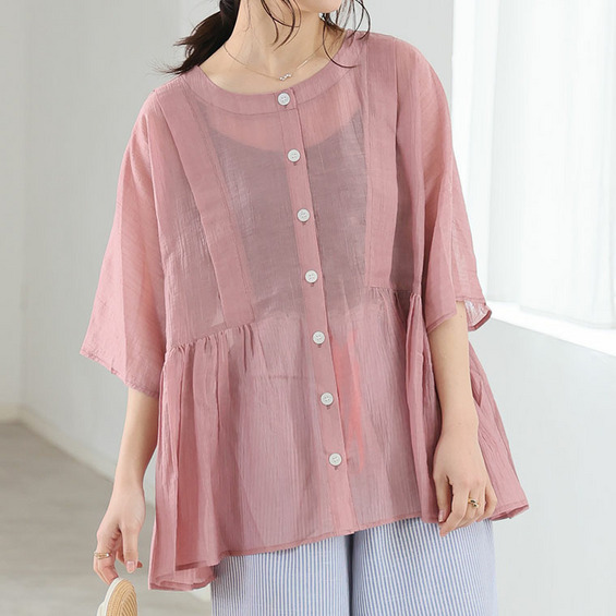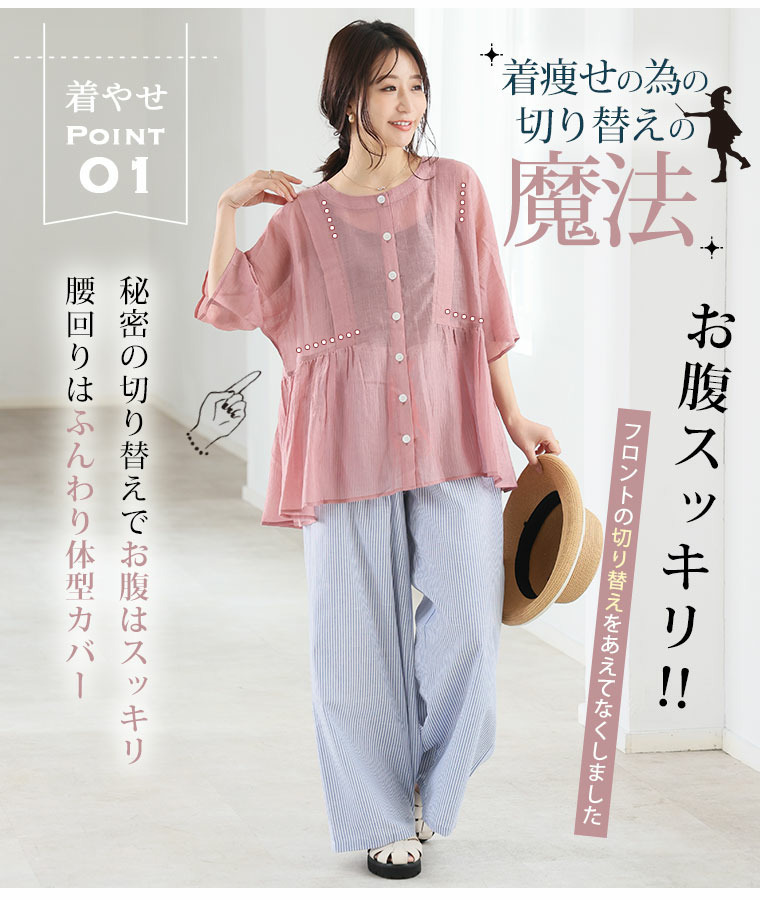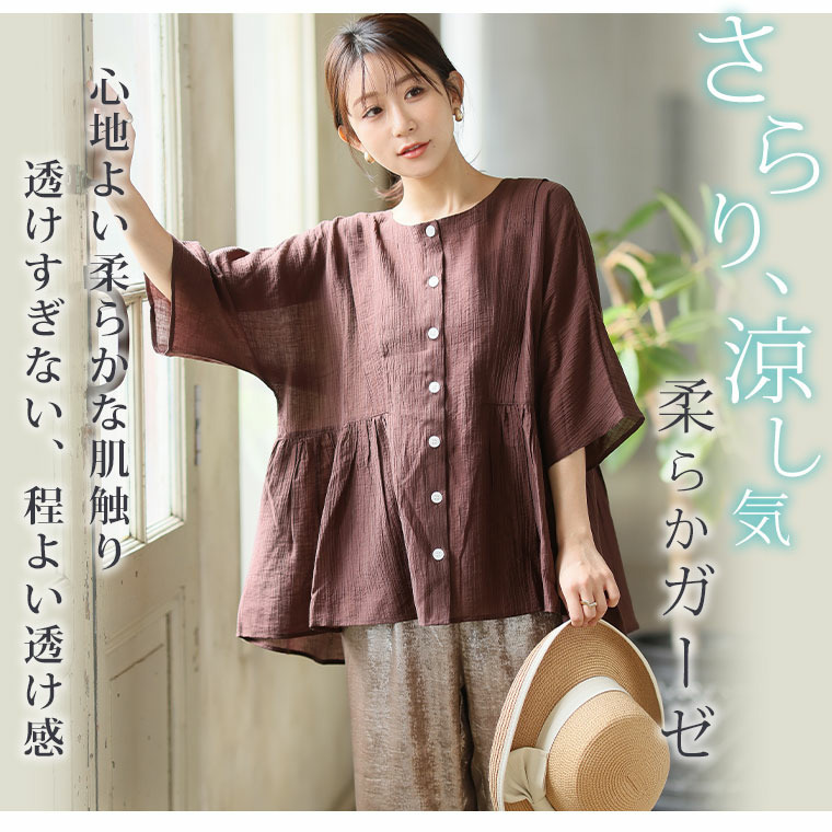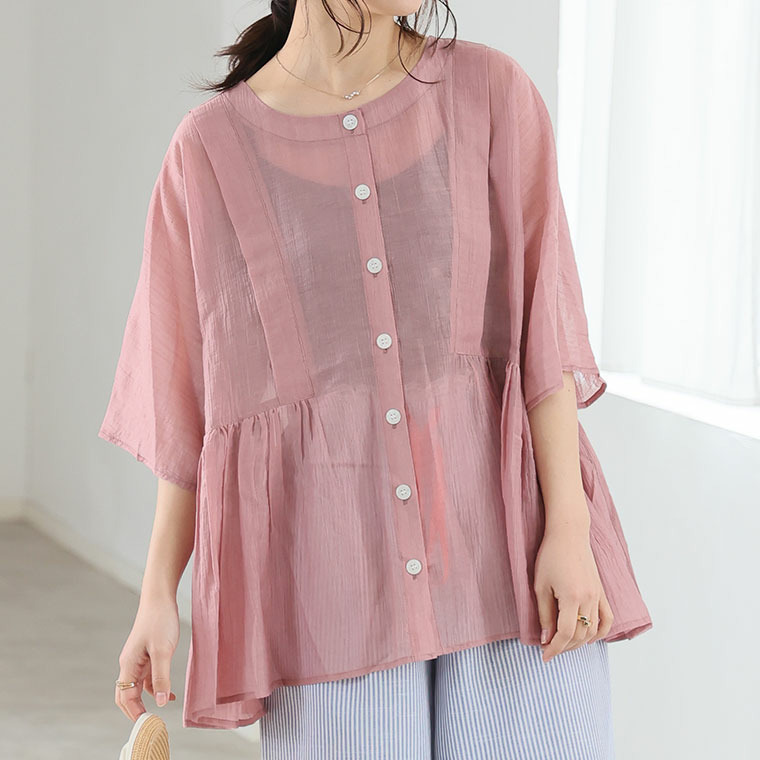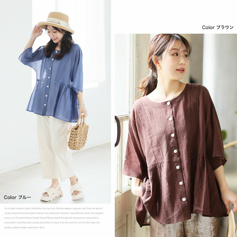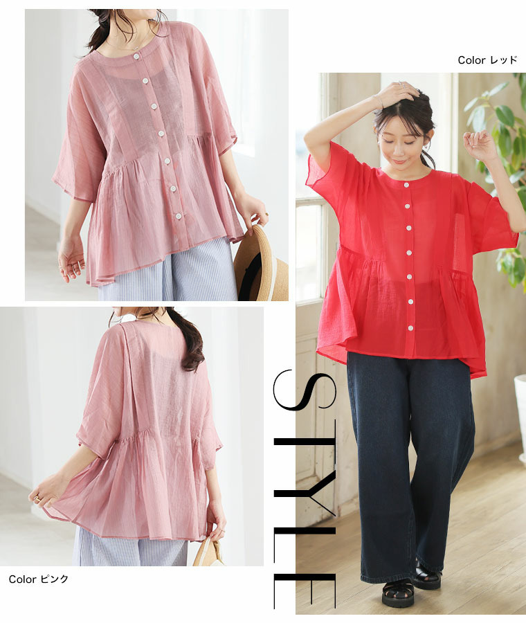 • さらり涼し気 デニムが映える 楊柳シアー 華奢魅せ タックギャザー シャツ ブラウス22