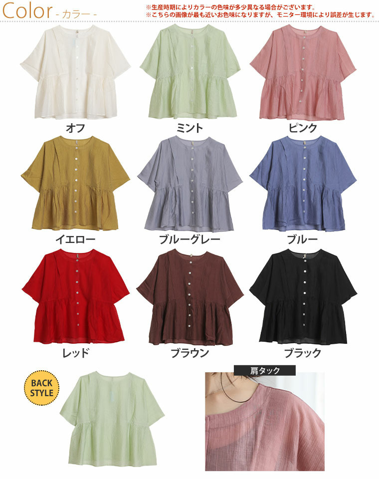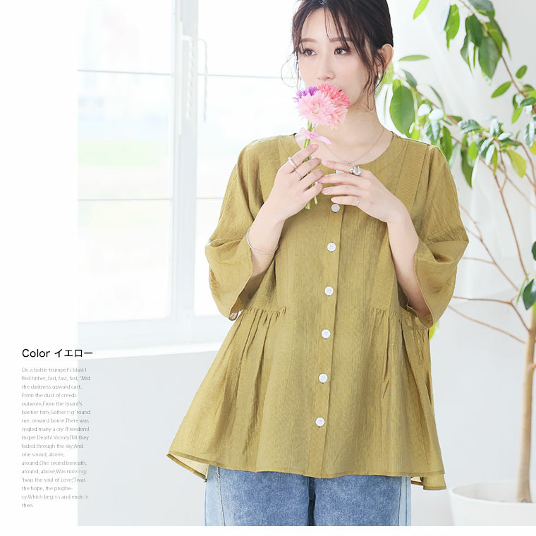 • さらり涼し気 デニムが映える 楊柳シアー 華奢魅せ タックギャザー シャツ ブラウス12