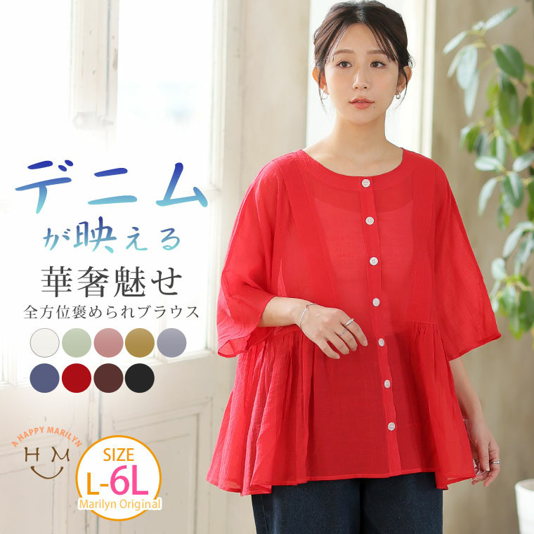 • さらり涼し気 デニムが映える 楊柳シアー 華奢魅せ タックギャザー シャツ ブラウス18