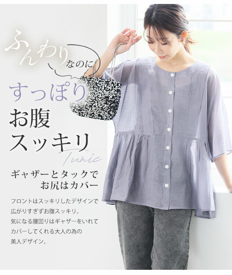 • さらり涼し気 デニムが映える 楊柳シアー 華奢魅せ タックギャザー シャツ ブラウス19