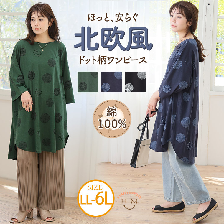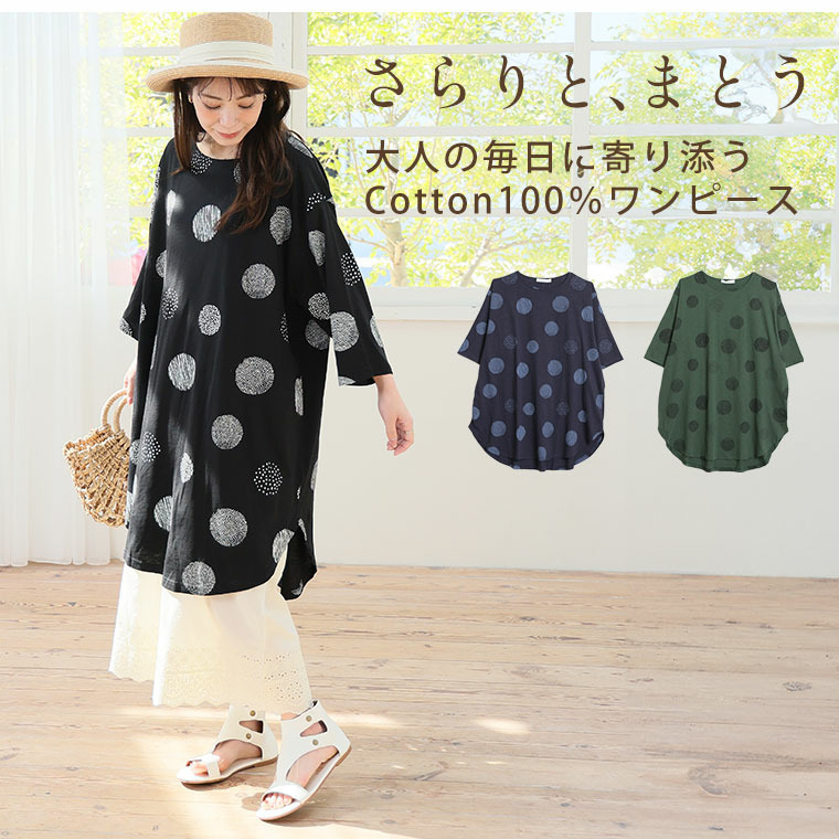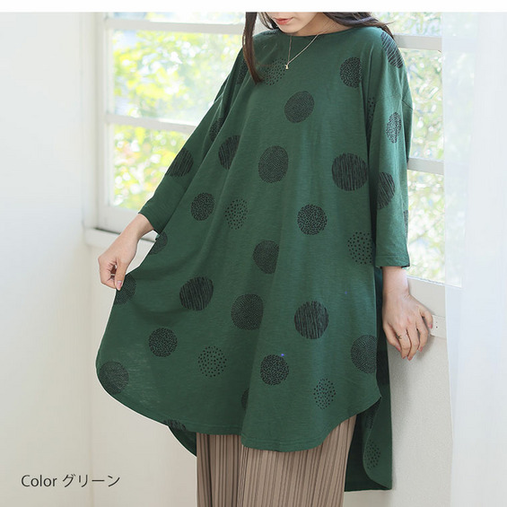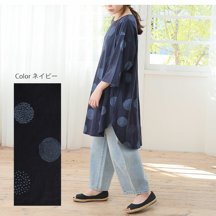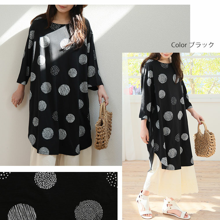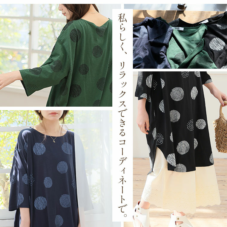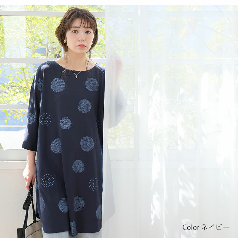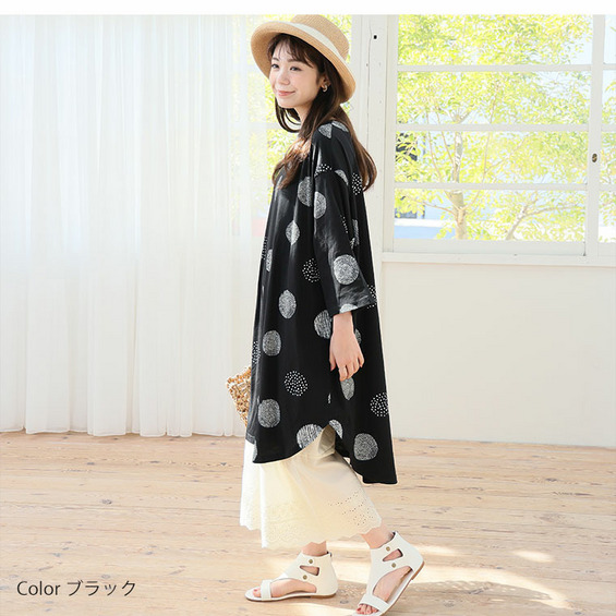 • 綿スラブ 総柄プリント 裾ラウンド カットソー ワンピ15