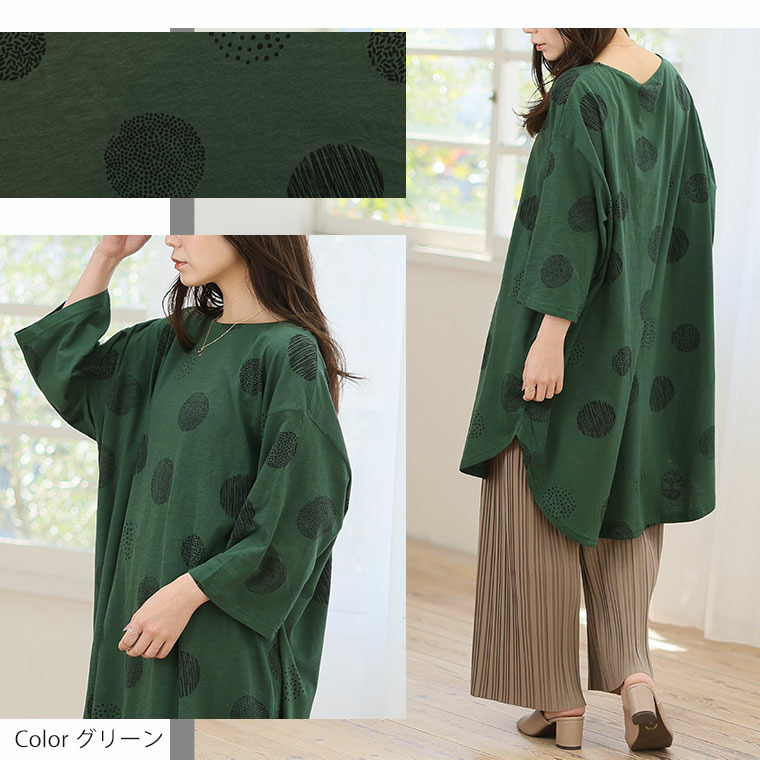 • 綿スラブ 総柄プリント 裾ラウンド カットソー ワンピ7