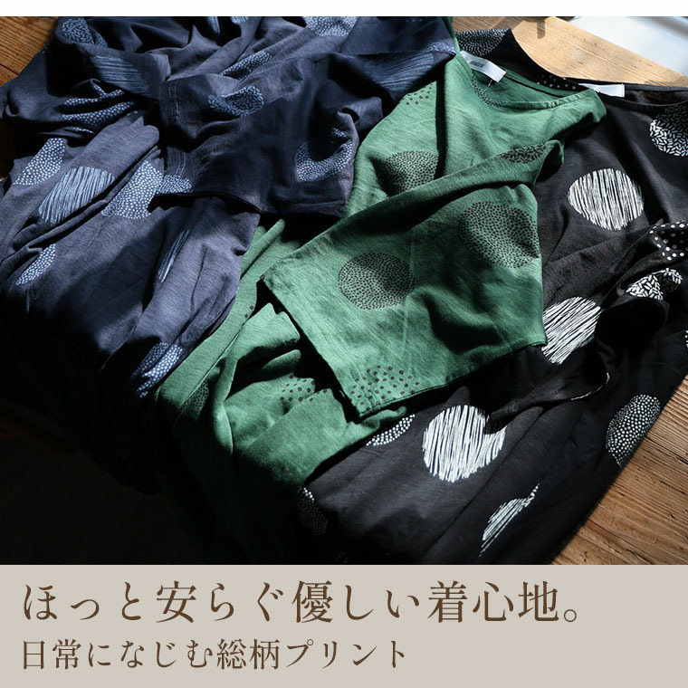 • 綿スラブ 総柄プリント 裾ラウンド カットソー ワンピ11