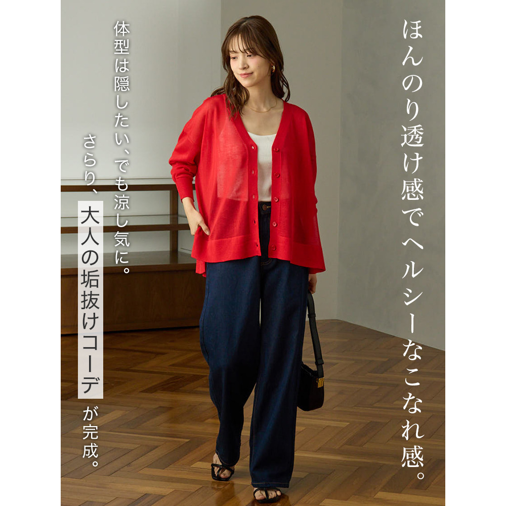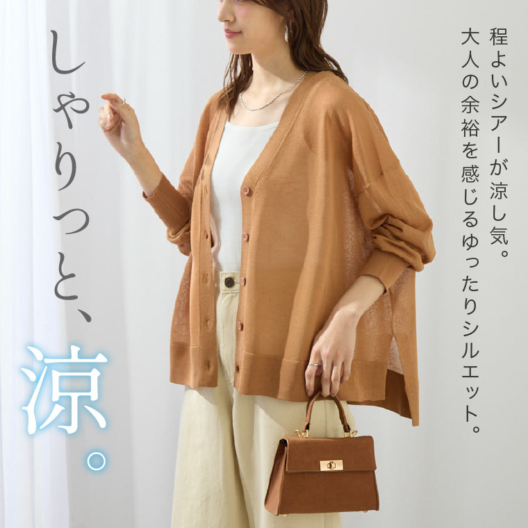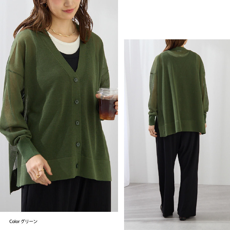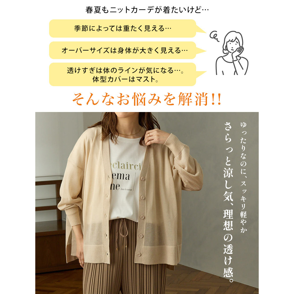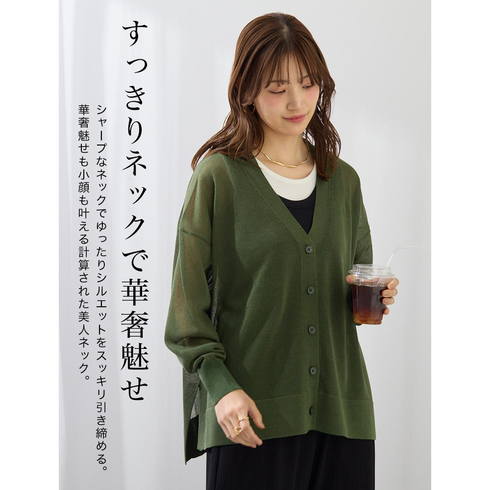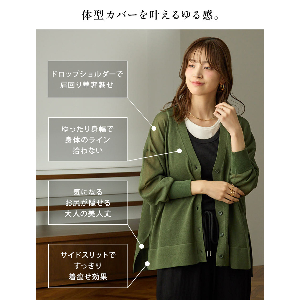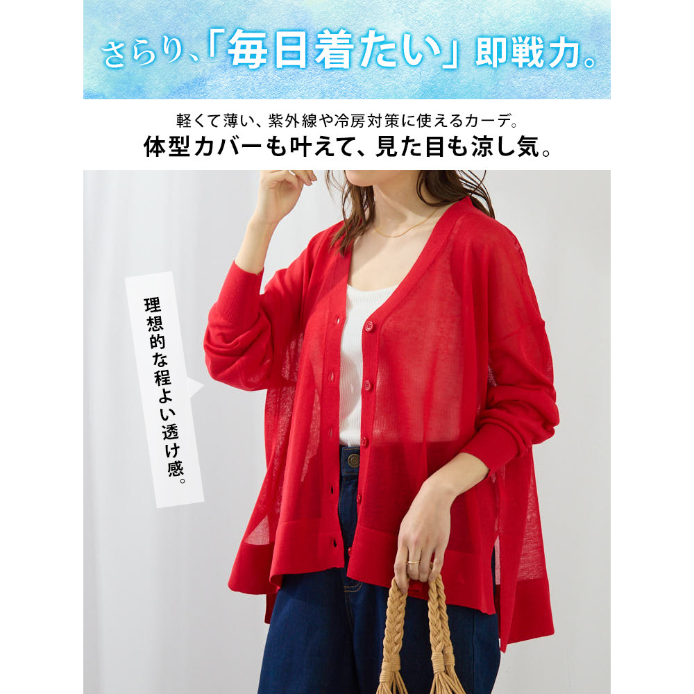 さらっと軽やか シャリ美 シアー イレヘム Vネック ゆるカーデ
