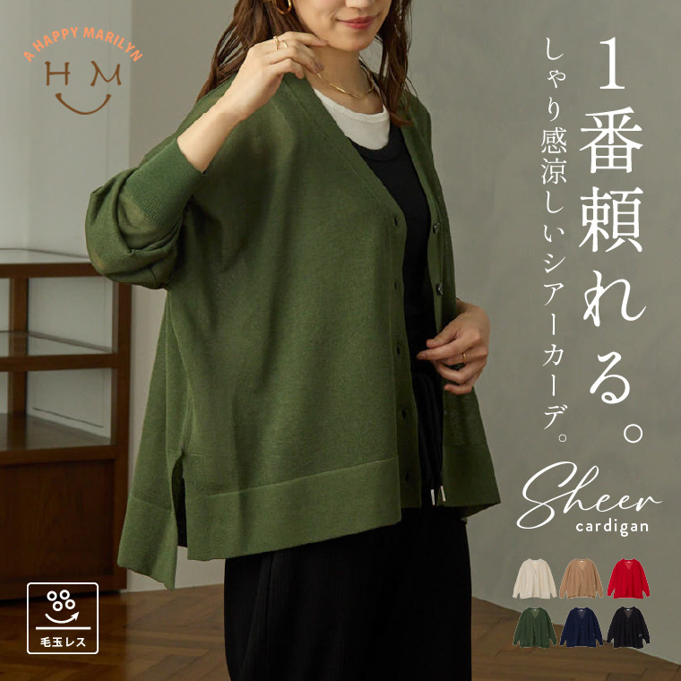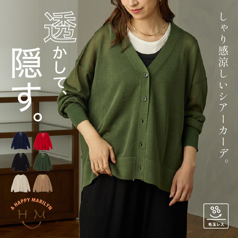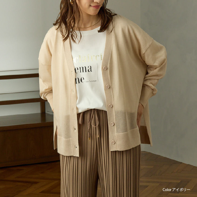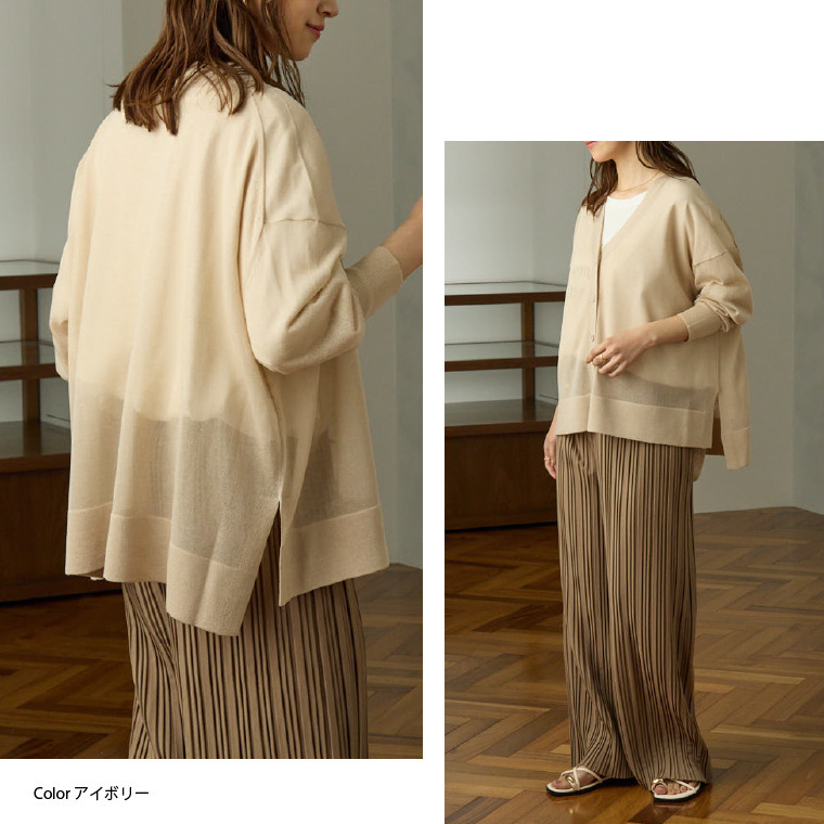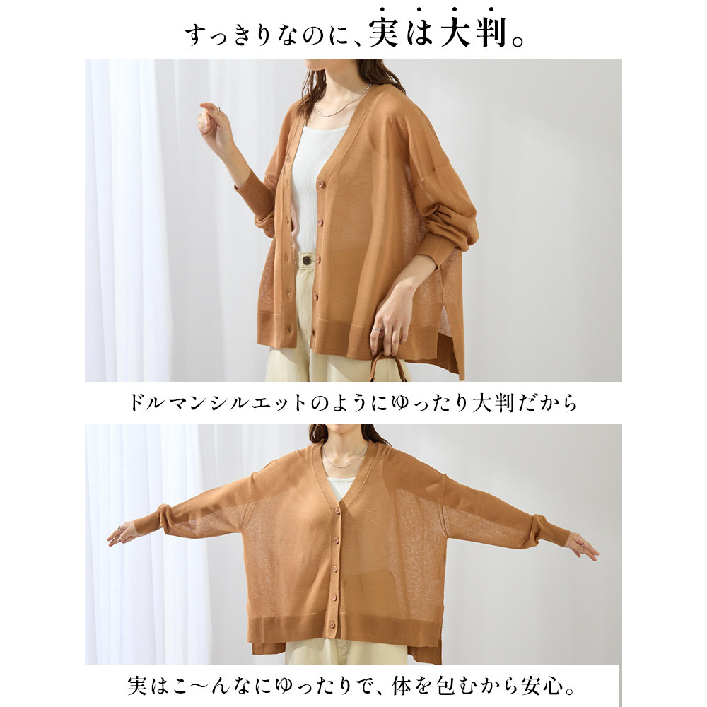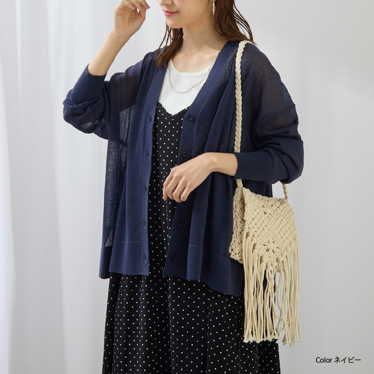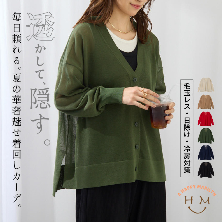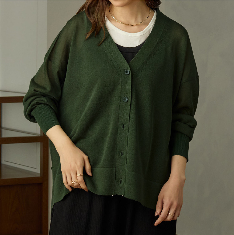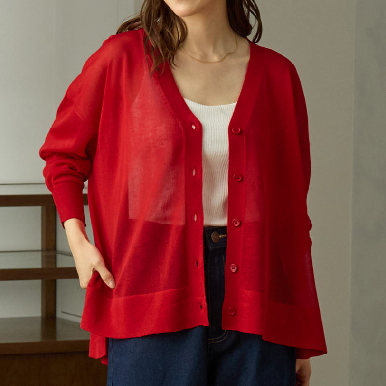さらっと軽やか シャリ美 シアー イレヘム Vネック ゆるカーデ