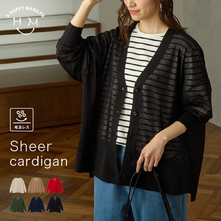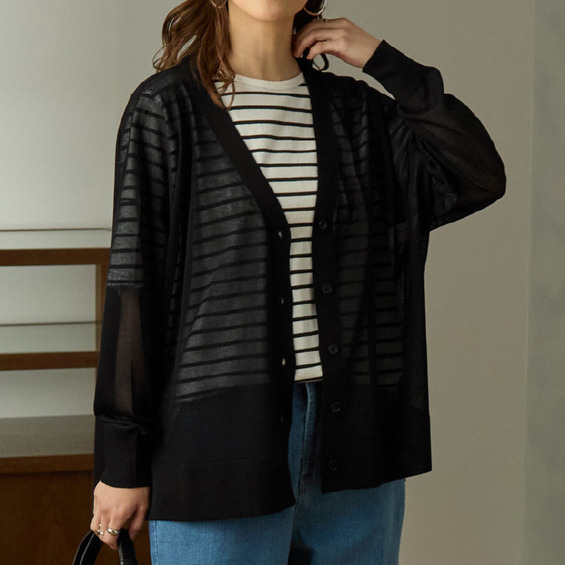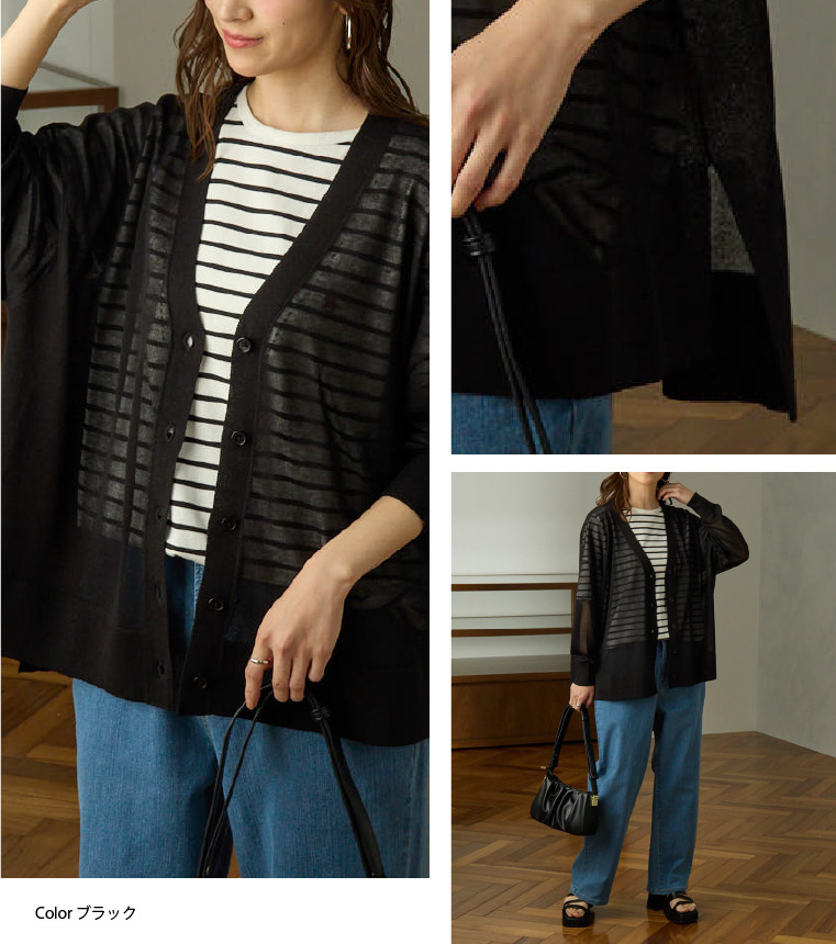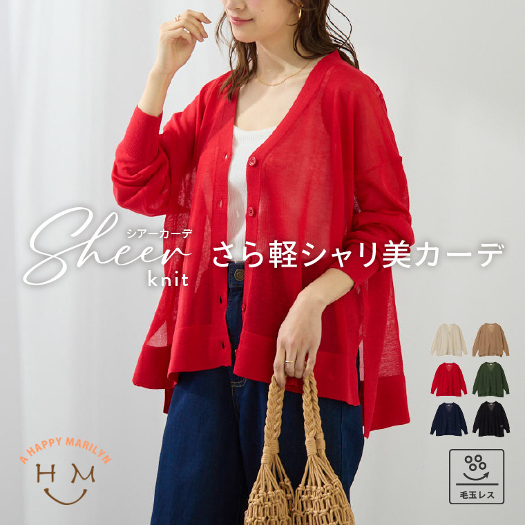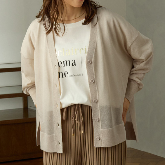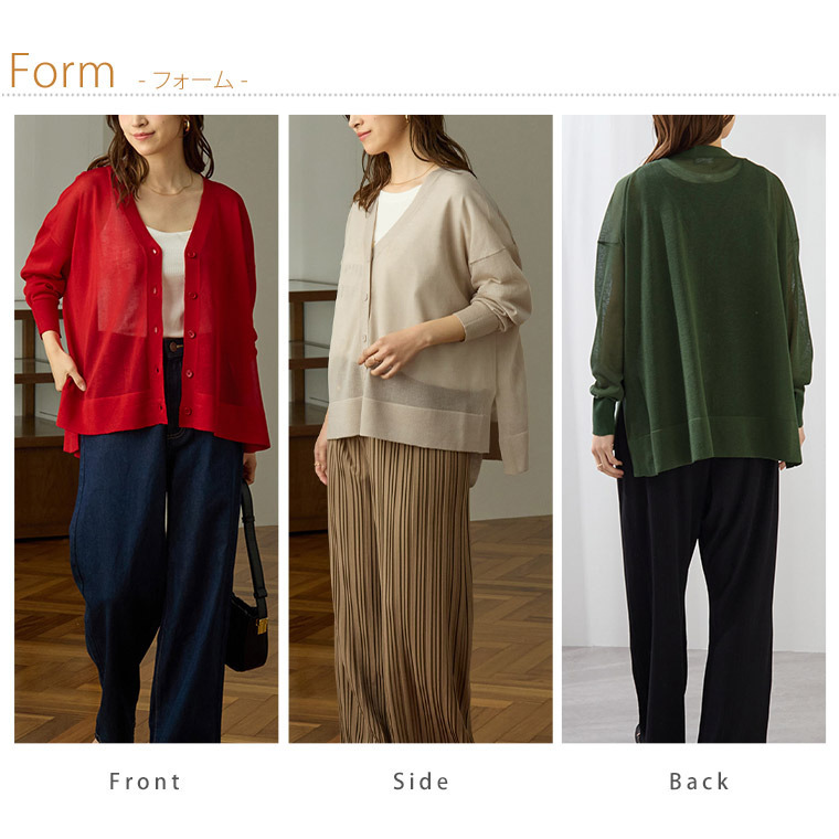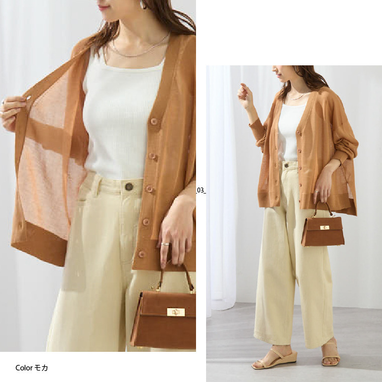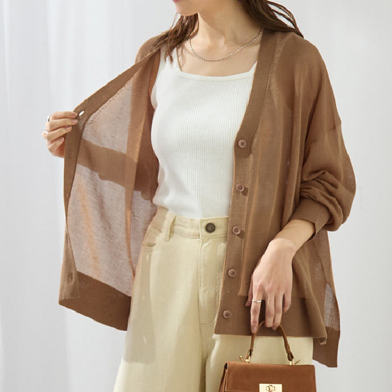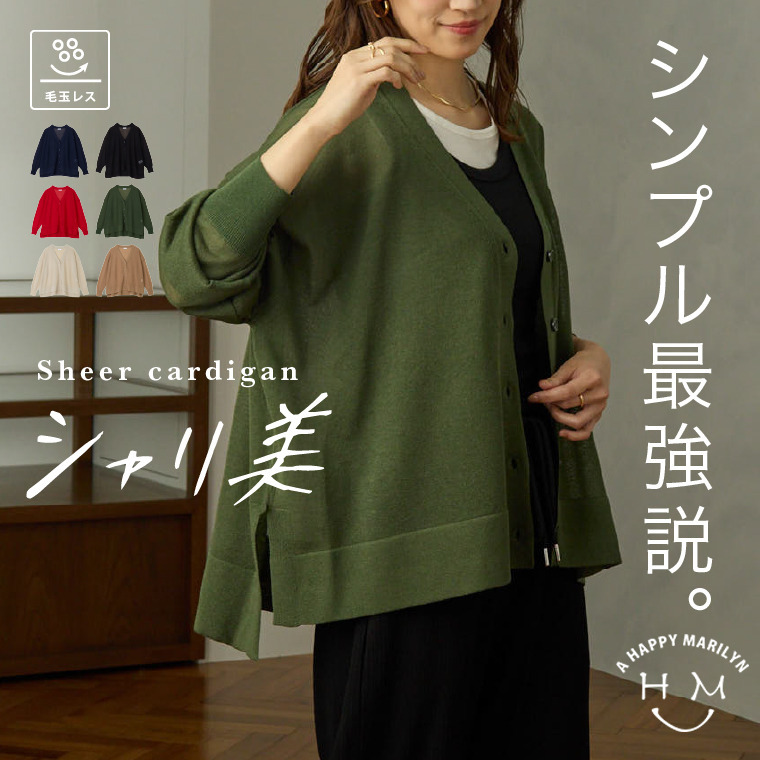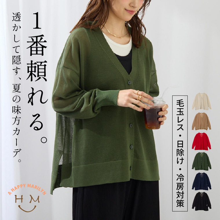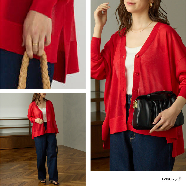 さらっと軽やか シャリ美 シアー イレヘム Vネック ゆるカーデ