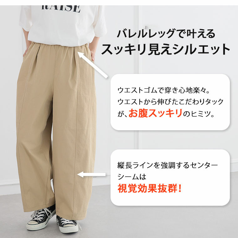 センターシームタック バレルレッグパンツ